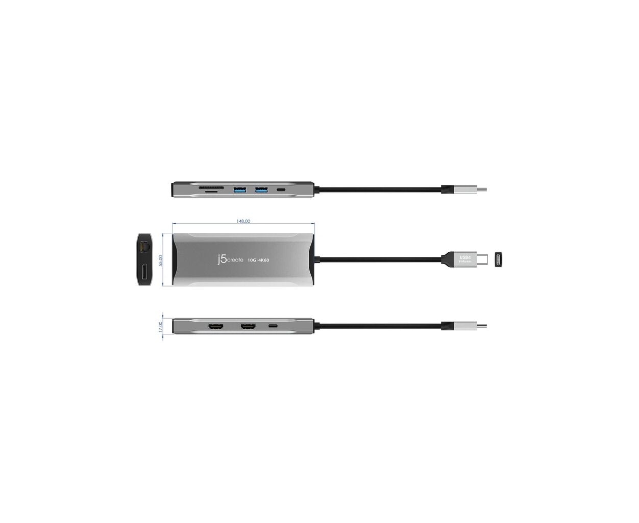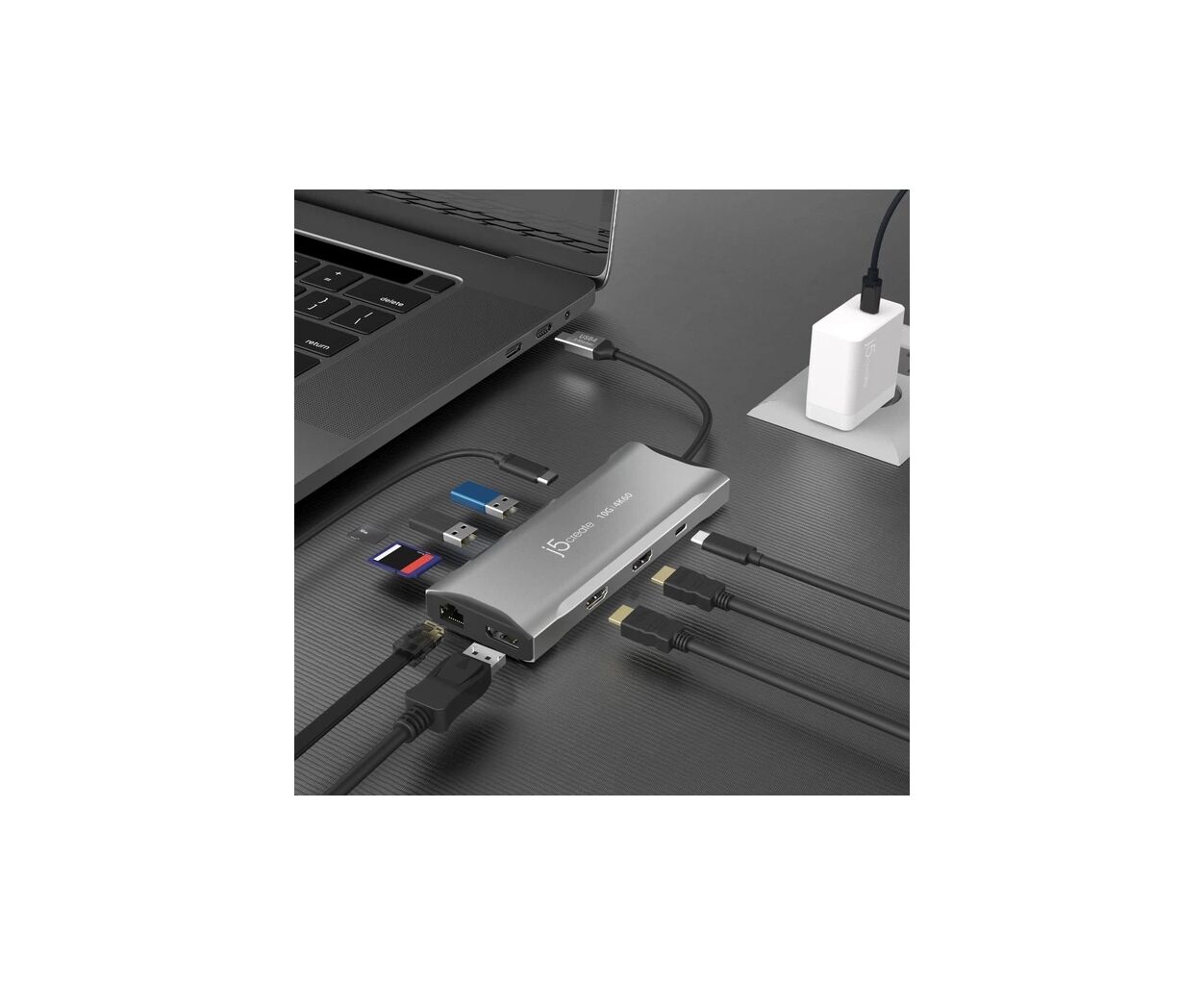 Концентратор J5create USB-C 9-in-1 2xUSB 3.2 + 2xUSB-C PD + 2xHDMI 4K + DisplayPort + SD/TF + RJ45 1000Mbps gray (JCD397-N)