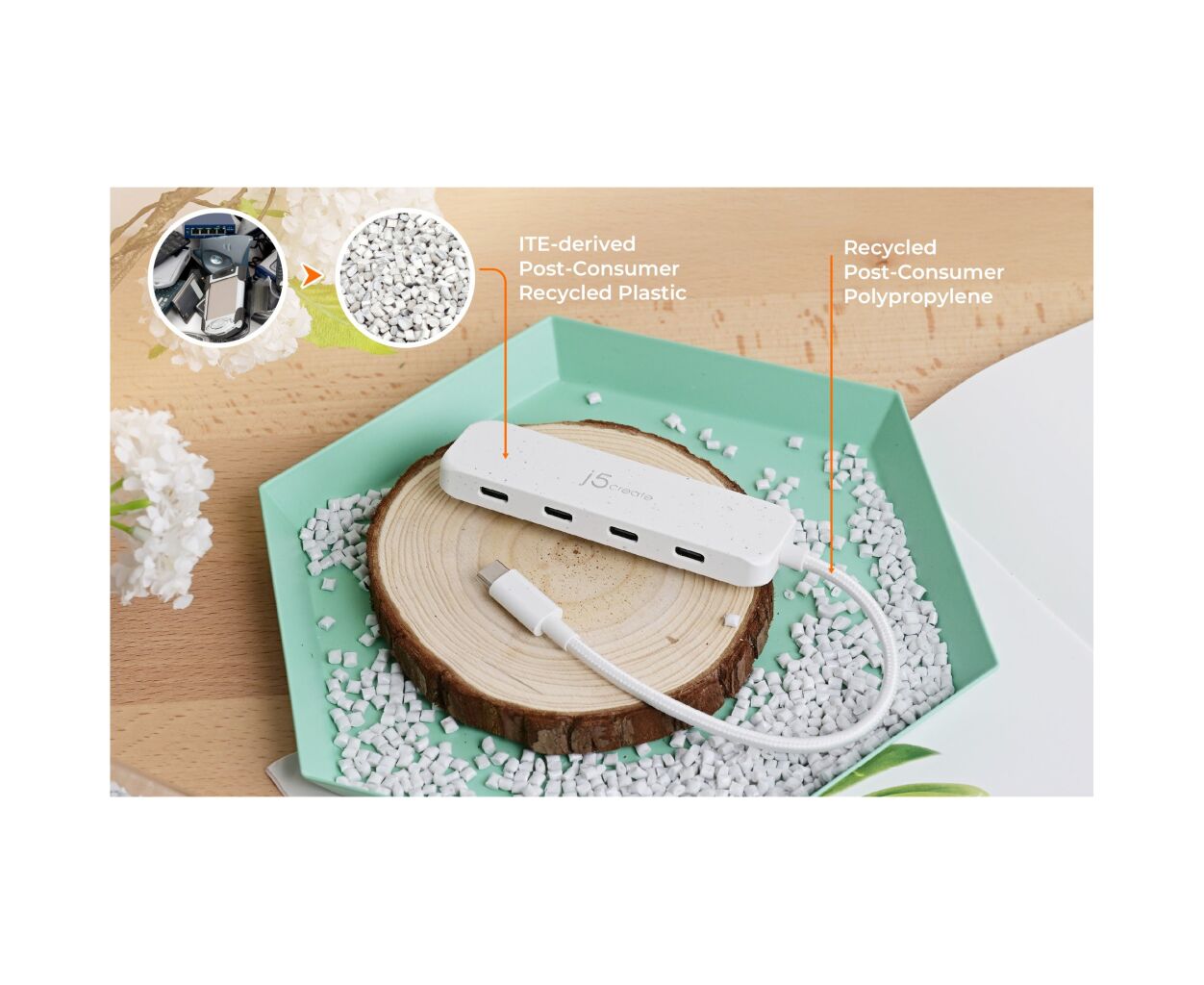 - 1 - Екологічний хаб USB-C до 4 портів Type-C Gen 2 (JCH345E)