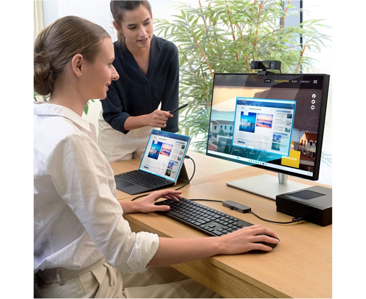 Цей хаб також підтримує спільний доступ до екрана, що дозволяє без зусиль розширювати або дублювати екрани між двома пристроями Windows. Він також підтримує віртуальний мультитач, жести Windows і стилус при використанні з планшетом із сенсорним екраном, що підвищує продуктивність і загальний комфорт роботи з сенсорним екраном.