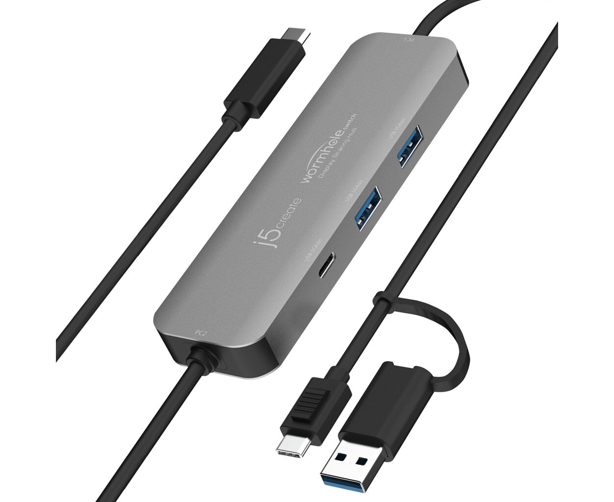 Концентратор J5create USB-C + USB A to 2xUSB + USB-C switch hub (JCH462-N)