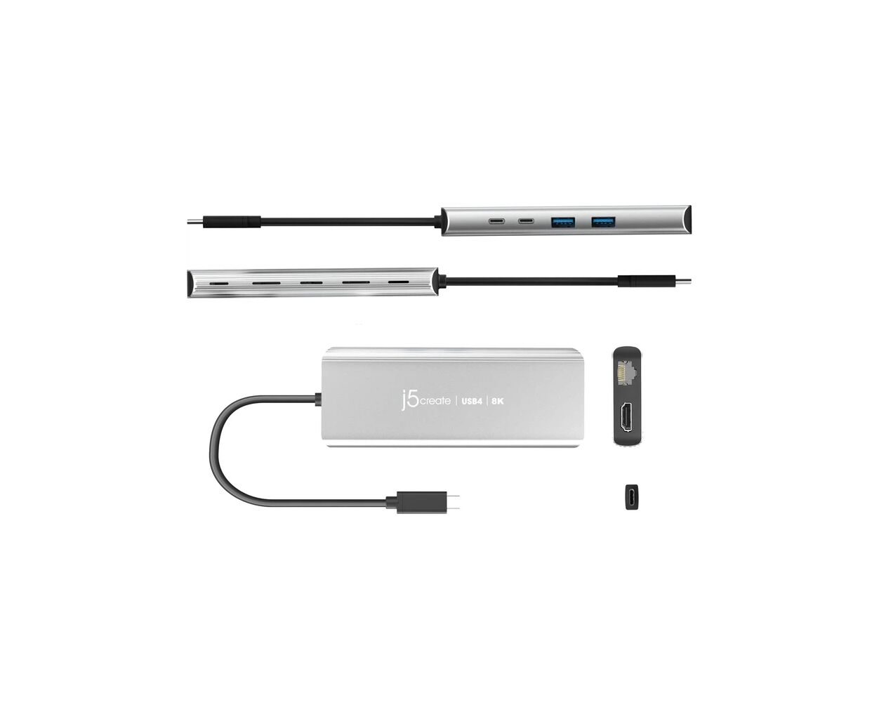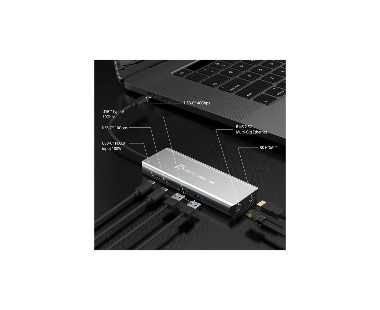 Опис Концентратор J5create USB-С 6-in-1 2xUSB 3.2 + USB-C PD 100W + USB-C + HDMI 8K + RJ45 2.5Gbps aluminum (JCD403-N)