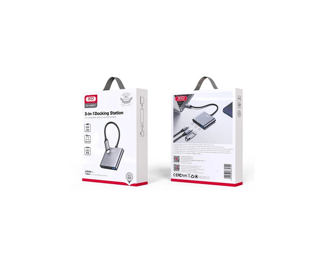 Концентратор XO USBC to USBCPD100W + HDMI 4K30Hz + USB 3.0 grey (HUB011.tranish)