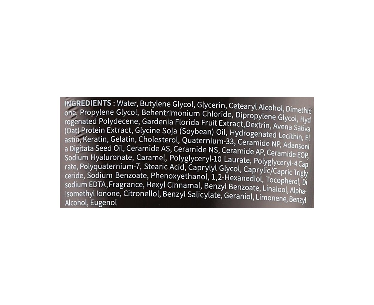 - Aqua, Butylene Glycol, Glycerin, Cetearyl Alcohol, Dimethicone, Propylene Glycol, Behentrimonium Chloride, Dipropylene Glycol, Hydrogenated Polydecene, Gardenia Florida Fruit Extract, Dextrin, Avena Sativa (Oat) Protein Extract, Glycine Soja (Soybean) Oil