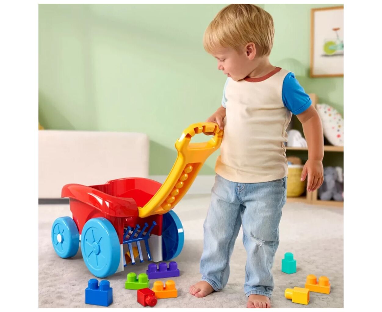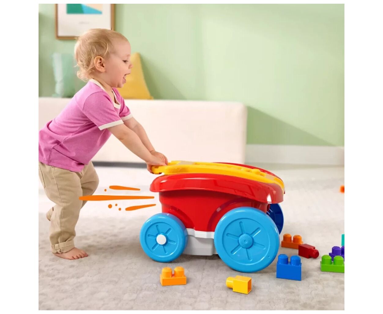 Розвивальна іграшка Mega Bloks Візок для збирання кубиків допоможе малюкам зробити свої перші великі кроки у захопливий світ творчості та конструювання!