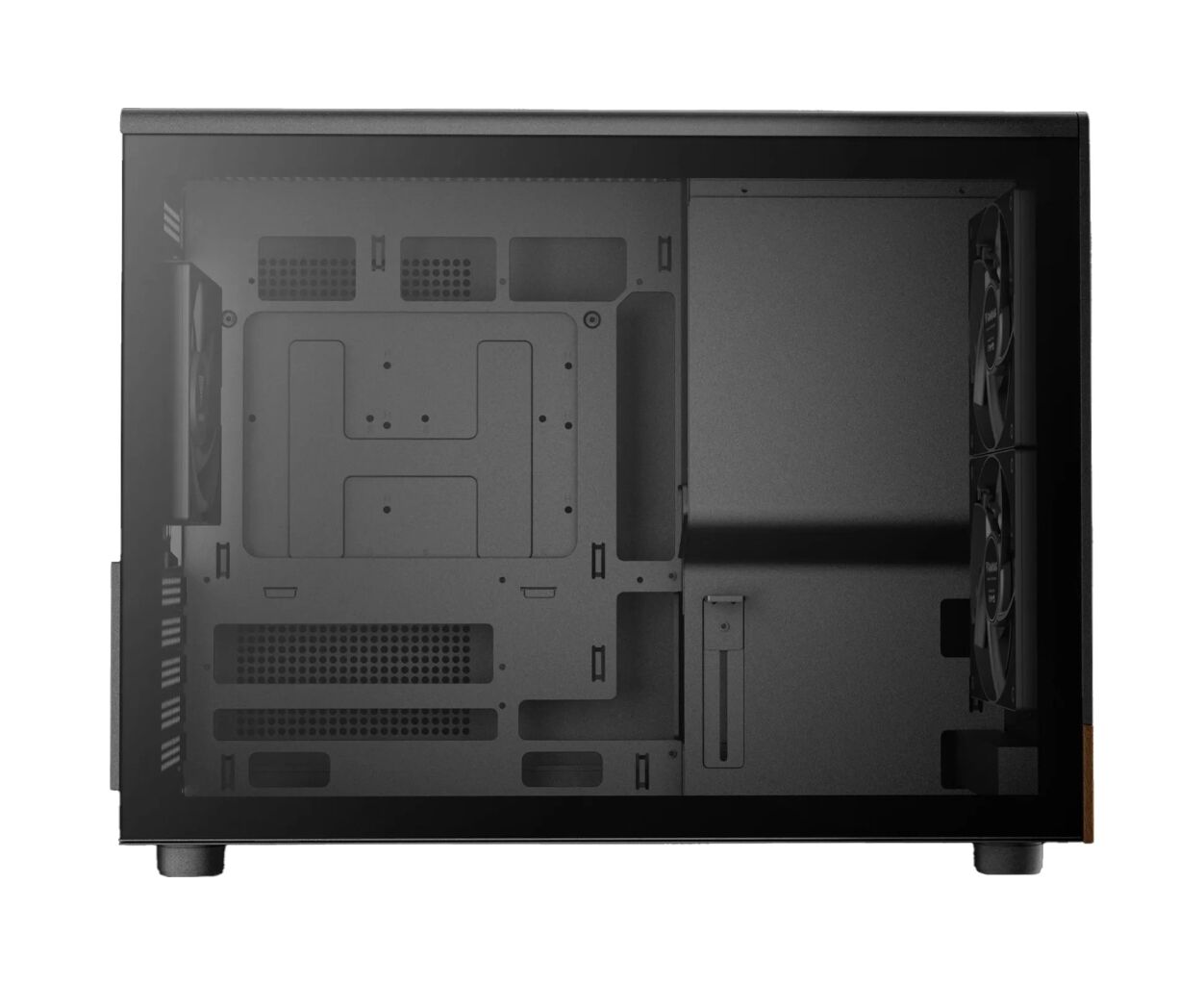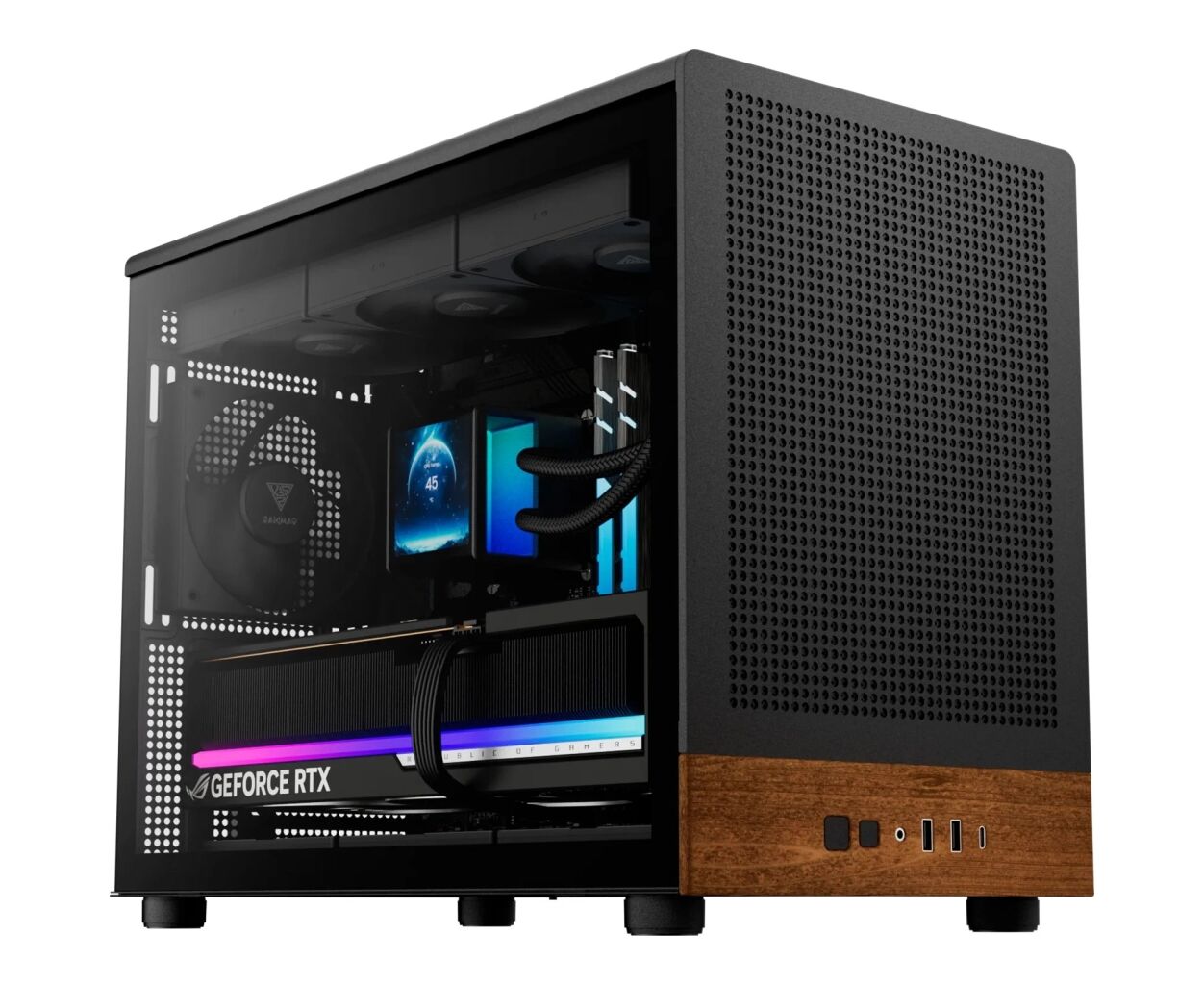 ATHENA M4M WOOD — це компактний корпус у форм-факторі micro-tower, який поєднує високу продуктивність з природною естетикою. Він має повністю перфоровану сітчасту передню панель та виразну панель введення/виведення зі справжнього дерева, яка додає йому сучасного вигляду. Корпус оснащений трьома 120-мм вентиляторами NOTUS M1 для забезпечення оптимізованого повітряного потоку, зберігаючи при цьому акуратний вигляд. Завдяки підтримці двох 360-мм радіаторів, материнських плат BTF та відеокарт довжиною до 395 мм, цей корпус пропонує чудові теплові характеристики та широку сумісність з обладнанням у компактному дизайні.