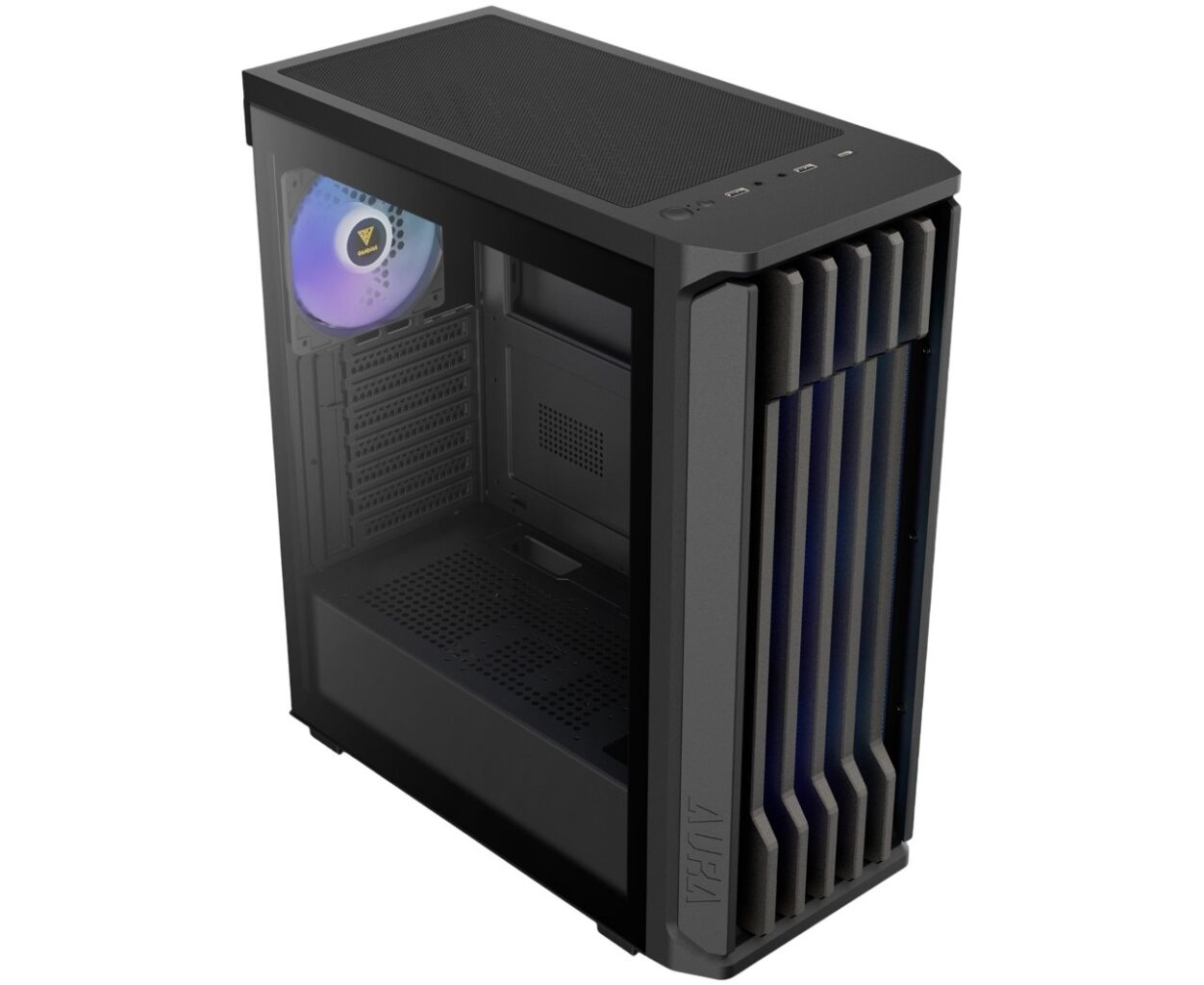 AURA GC11 ARGB — це доступний корпус mid-tower з елегантним та модним дизайном. Корпус має вражаючу вертикальну решітчасту передню панель з дрібною сітчастою підкладкою для ефективного потоку повітря, а також 4 попередньо встановлені вентилятори ARGB, просторі внутрішні відділення та панорамну бічну панель із загартованого скла для демонстрації вашої збірки.