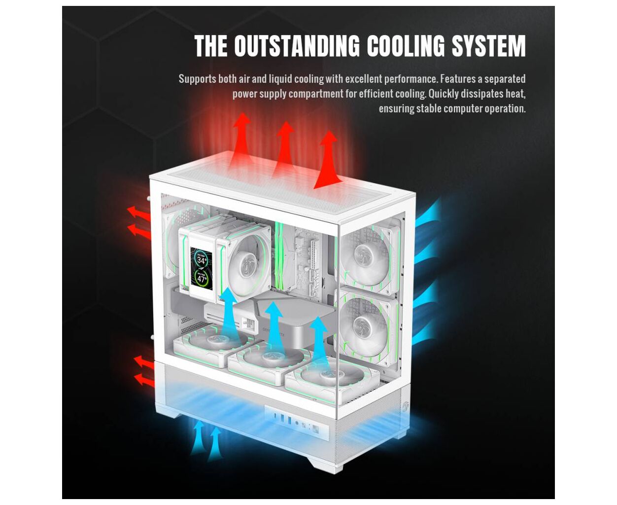 Minitower, ITX, Micro - ATX, GPU - 410 мм, CPU - 165 мм, 433 х 210 х 450, білий