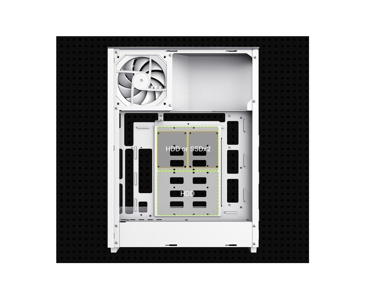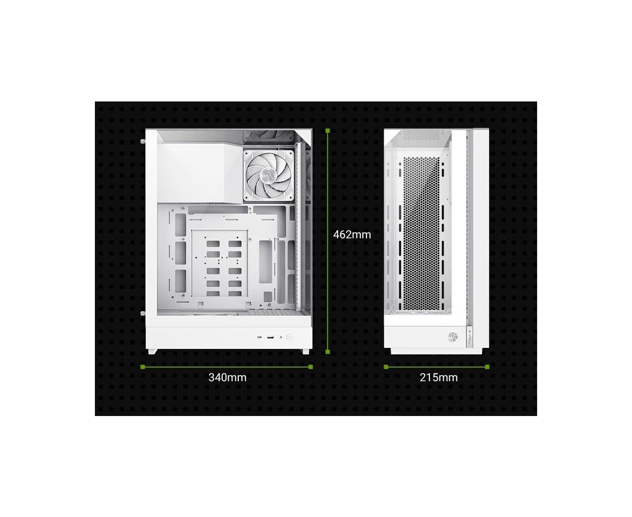 - Ефективна компактна конструкція підтримує 360-мм рідинне охолодження, материнські плати M-ATX та блоки живлення SFX.