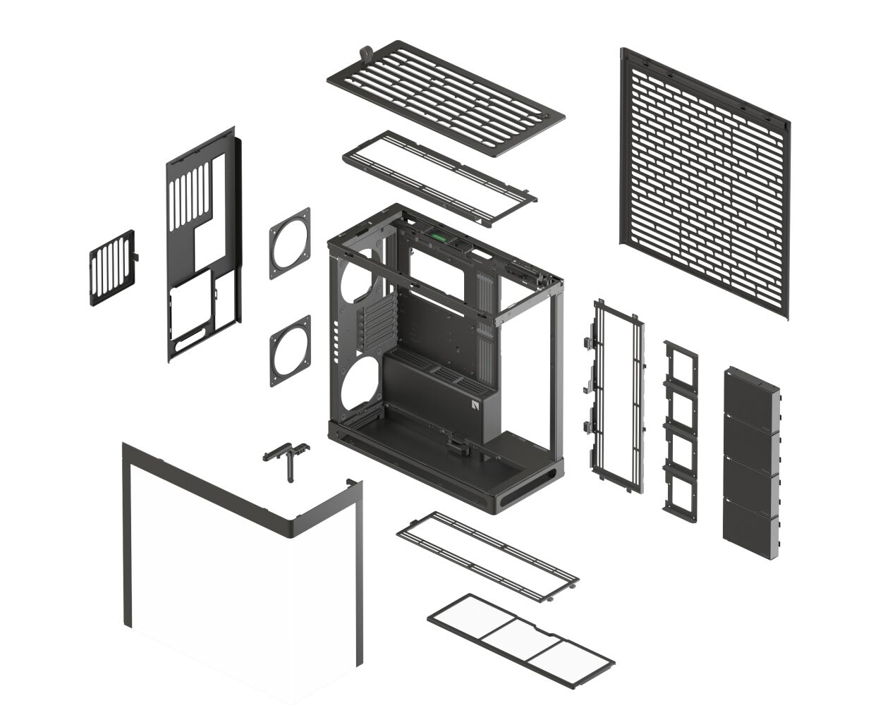 Miditower, ATX, Micro - ATX, Mini - ITX, Слотів розширення - 6, Додатково - Top 3x12/14 см, Side 3x12/14 см, Bottom 3x12/14 см, 2 х 120 мм / 2 х 140 мм Back, GPU - 480 мм, CPU - 185 мм, 17.84 кг, чорний