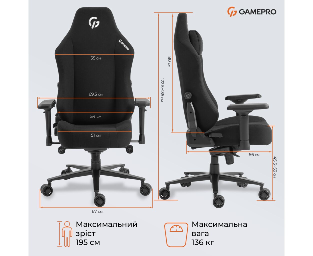 Крісло ігрове GamePro GC775B Fabric Black (GC775B)