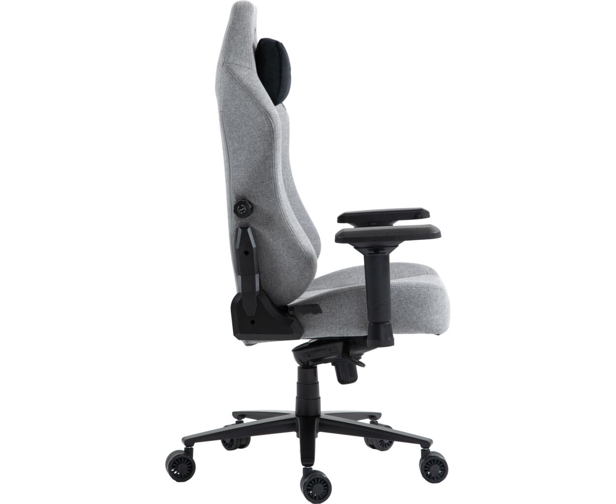 Матеріал рами виготовлено з легкого та міцного алюмінію, що надає виробу високої надійності та стабільності. Крісло обшито стильною сірою текстильною оббивкою, яка підкреслює строгий естетичний стиль і забезпечує чудову вентиляцію навіть під час тривалих годин роботи. М'яка піна холодного формування всередині крісла гарантує зручність і адаптованість до tіла, забезпечуючи комфорт навіть у найдовші робочі дні або ігрові ночі.