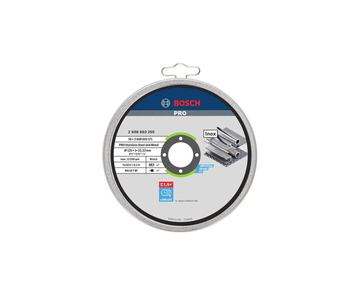 Опис Круг відрізний Bosch Professional Stand по металу, 125х1.0х22.2мм, 10шт (2.608.603.255)