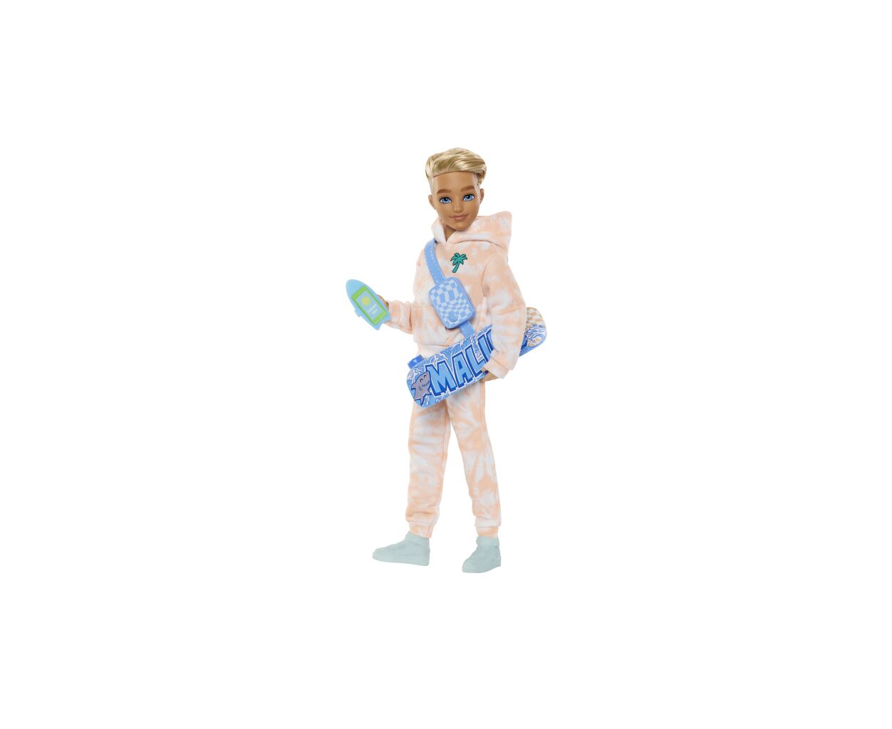 Barbie Dream besties, Від 4 років, кен, скейтборд для динамічних сюжетів, пляшка для води, сонцезахисний крем, телефон та серфбордний чохол для нього, сумка через плече, сонцезахисні окуляри, ріжок морозива