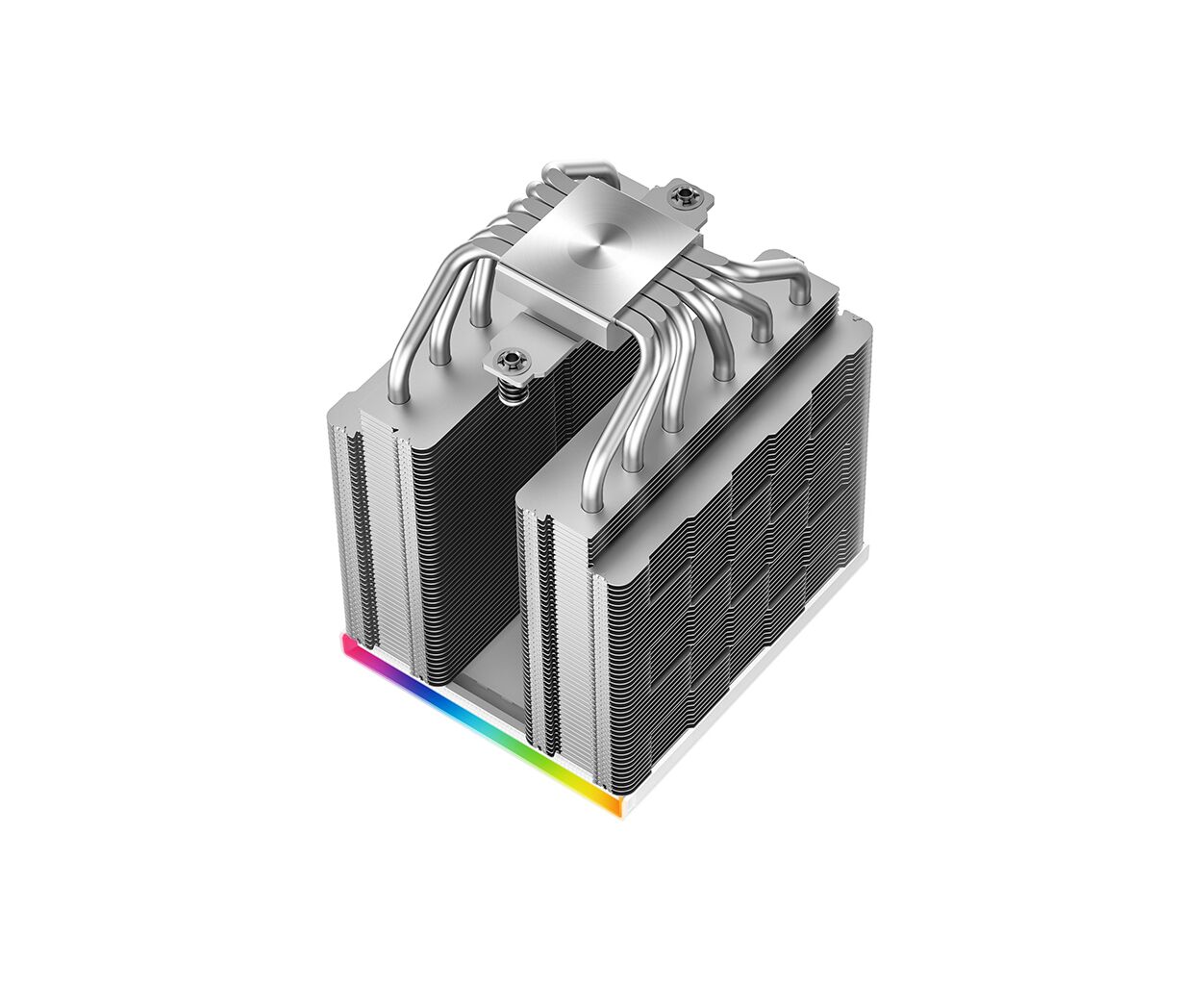 сокет - AM4, AM5, 1150, 1151, 1155, 1200, 1700, 1851, матеріал радіатора - алюміній, діаметр вентиляторів - 120 мм, Максимальна частота обертів - 1850 об/хв, Тип підшипників - гідродинамічний (FDB Bearing), рівень шуму - 28 dB, роз'єми живлення - 4-pin PWM, 4-pin, Підсвічування - ARGB
