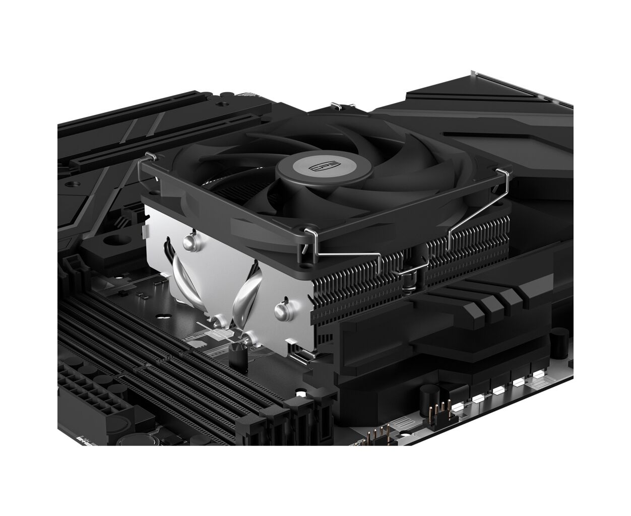 - Компактна висота 53.5 мм — цей кулер добре підходить для корпусів з обмеженим простором (наприклад, Slim або Mid-Tower із помірною відстанню до кришки), де інші великі кулери не влізуть.