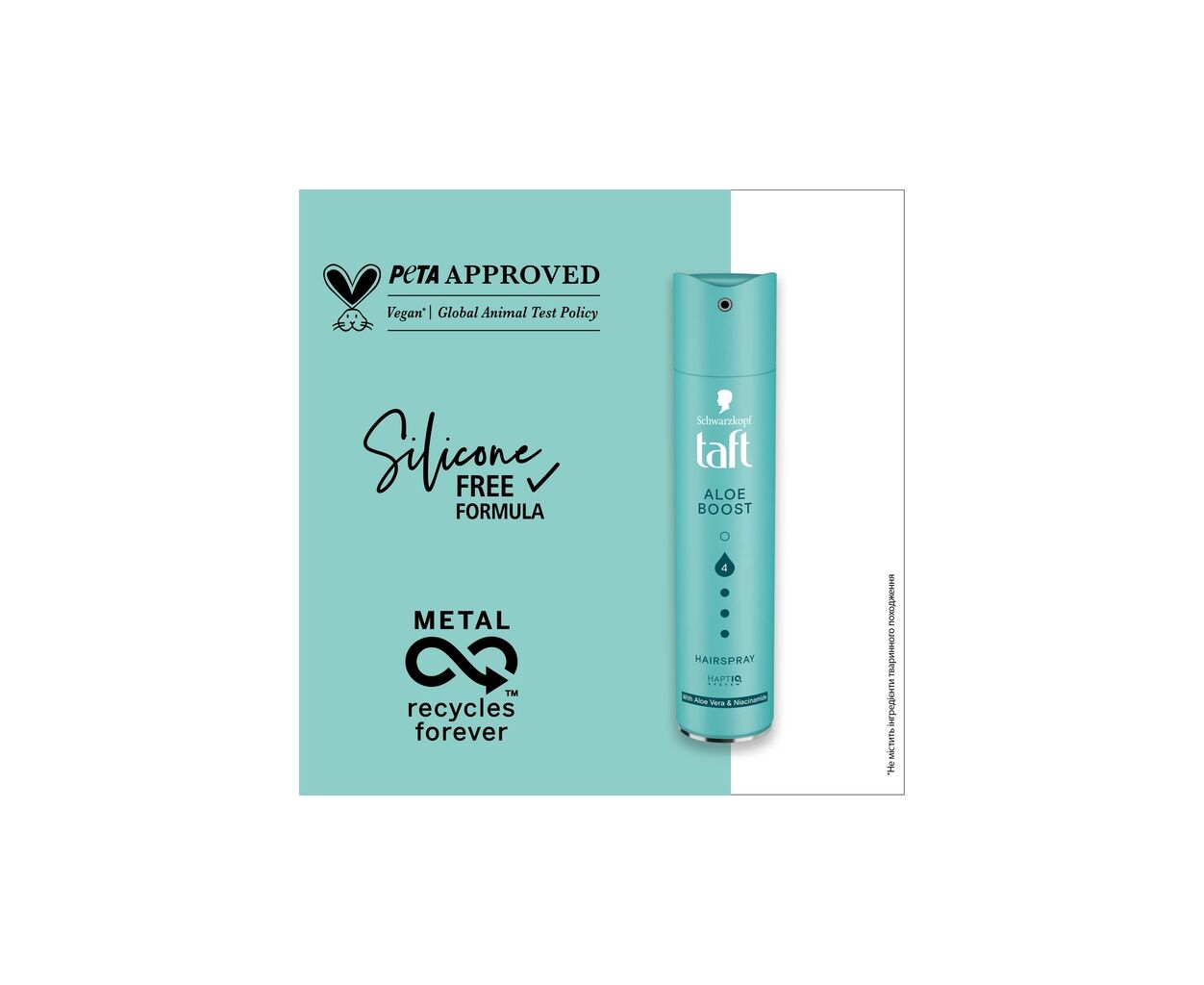 Опис Лак для волосся Taft Aloe Boost 4 Hairspray 250 мл (9000101744163)