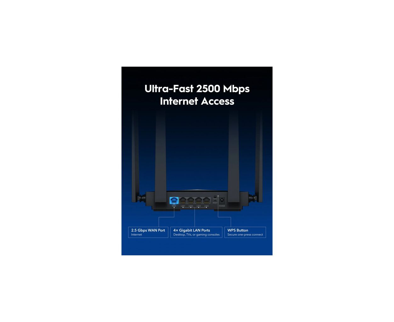 3570 Мбіт/с, 2.4 / 5 ГГц, незнімні, Антен - 4, 10/100/1000/2500 BASE-T Ethernet, LAN - 4, VPN - так