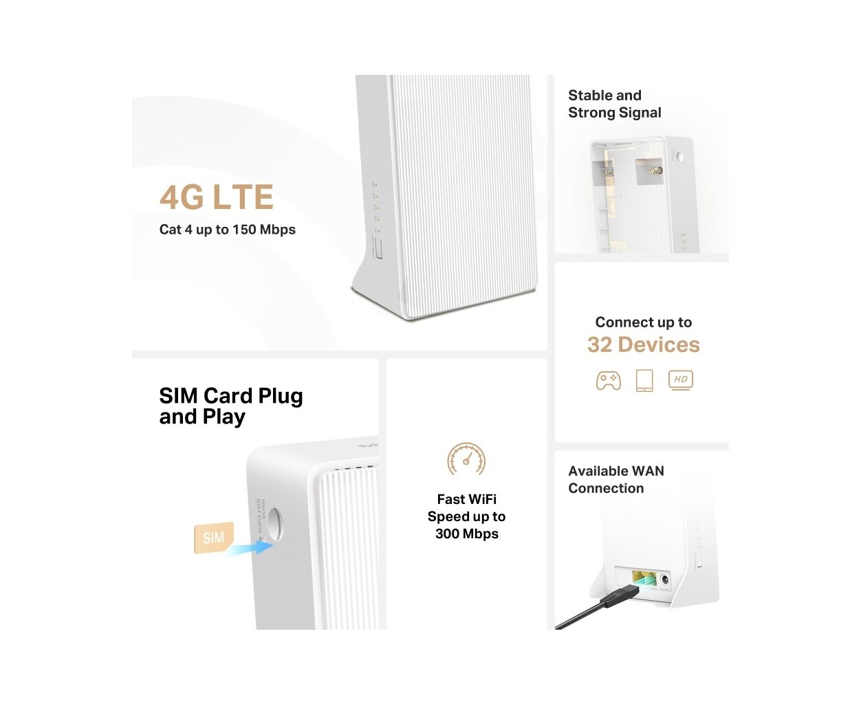 Маршрутизатор Mercusys MB110-4G — це ідеальне рішення для створення надійної бездротової мережі в вашому домі чи офісі. Підтримуючи технологію 4G/LTE, цей пристрій забезпечує швидкість Wi-Fi до 300 Мбіт/с на частоті 2.4 ГГц, що дозволяє безперебійно дивитися потокове відео, грати в онлайн-ігри та комфортно працювати в інтернеті.