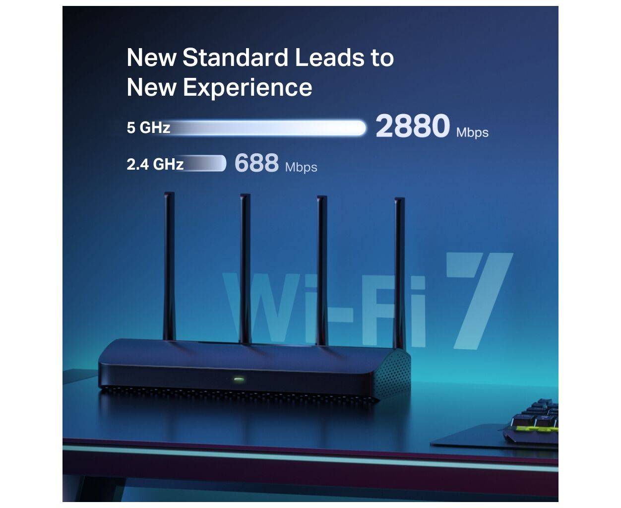Зустрічайте новий маршрутизатор Mercusys MR27BE, що відкриває світ можливостей завдяки підтримці Wi-Fi 7. Цей пристрій забезпечує плавну потокову передачу в форматі 8K, VR/AR, бездоганні відеоконференції та миттєве завантаження, підкреслюючи інноваційність вашої домашньої мережі.
