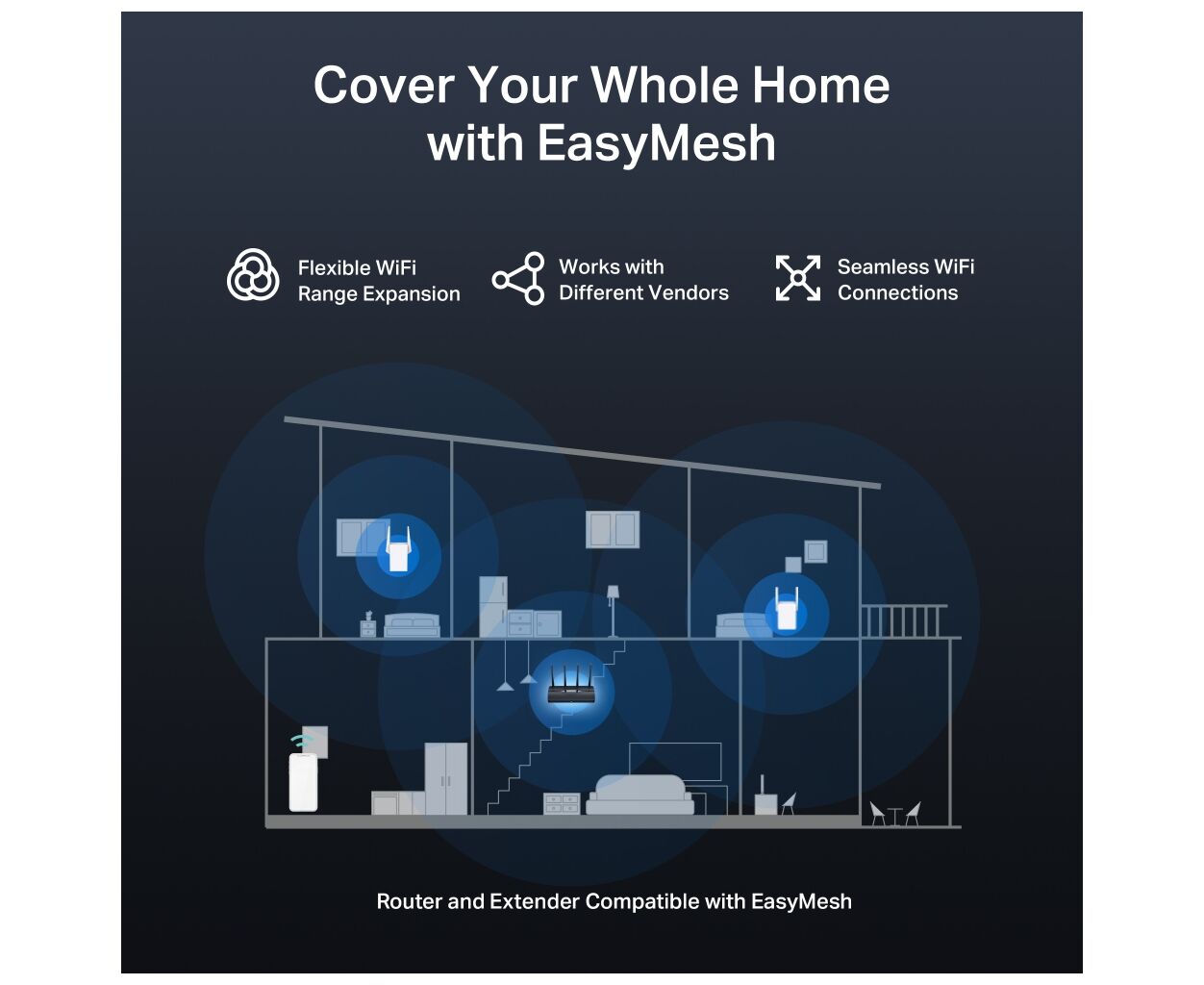 Завдяки EasyMesh, цей маршрутизатор здатний об'єднувати всі точки доступу в єдину мережу з одним іменем Wi-Fi та паролем, створюючи масштабовану безшовну мережу. Батьківський контроль та WPA3 гарантують безпеку онлайн-середовища для всіх членів сім’ї. Інтуїтивний застосунок MERCUSYS дозволяє легко налаштовувати та управляти мережею, роблячи ваш Інтернет-досвід зручнішим та безпечнішим.