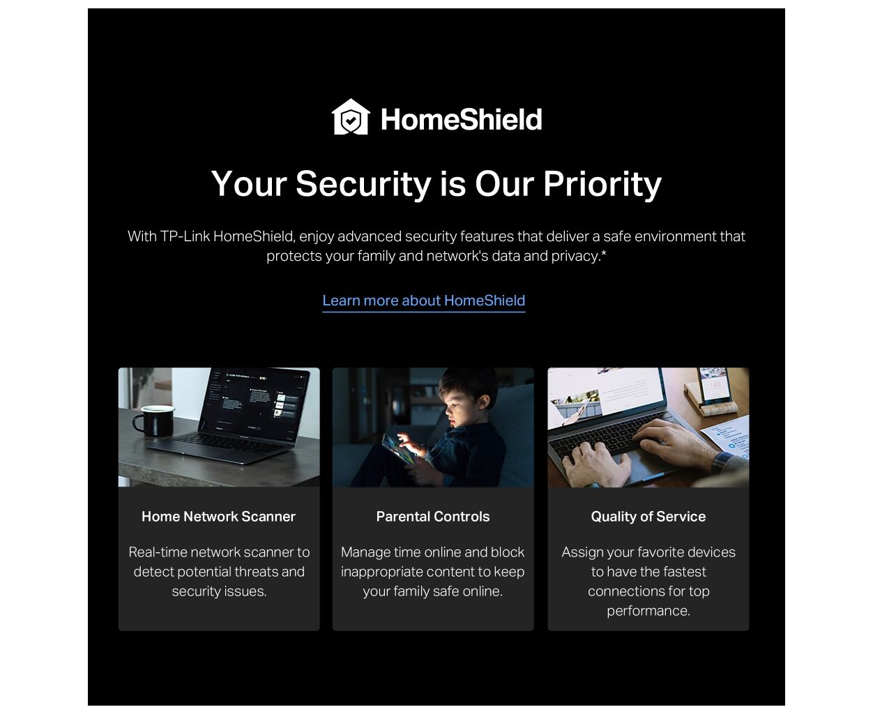 Сумісність з EasyMesh дозволяє гнучко формувати мережу Wi-Fi у всьому будинку, додаючи додаткові маршрутизатори або підсилювачі сигналу. TP-Link HomeShield гарантує захист вашої мережі, даних та конфіденційності. Налаштування стало простішим завдяки додатку Tether, який дозволяє швидко та легко налаштувати мережу та забезпечити потужний сигнал у вашому домі.