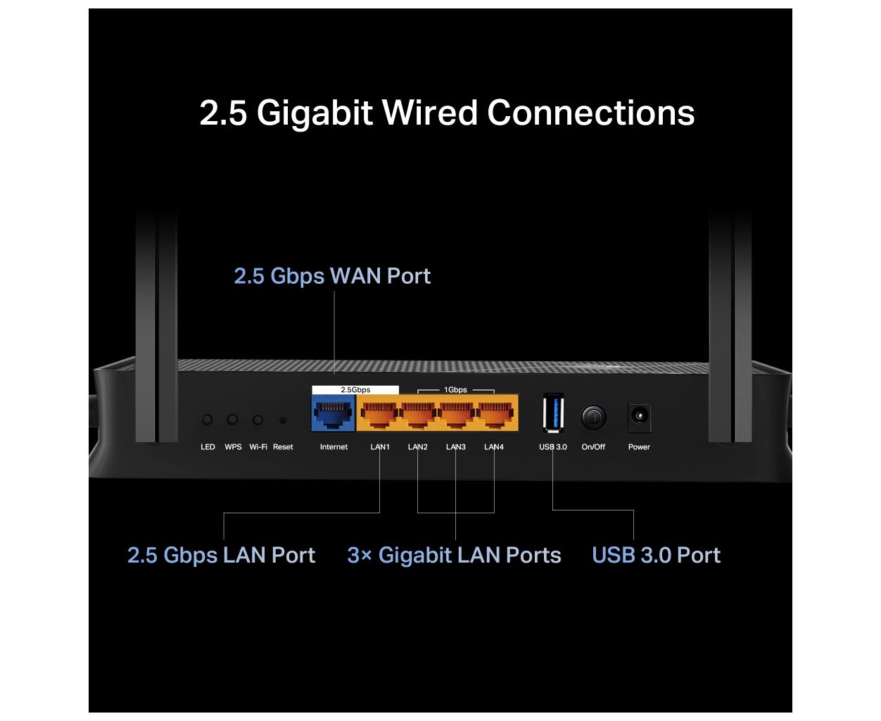 Підтримка LAN портів з швидкістю 2.5 Гбіт/с дозволяє вам максимально використовувати можливості вашого інтернет-провайдера, а порт USB 3.0 — обмінюватись файлами з підключеними пристроями, створюючи ваш особистий хмарний сервер.