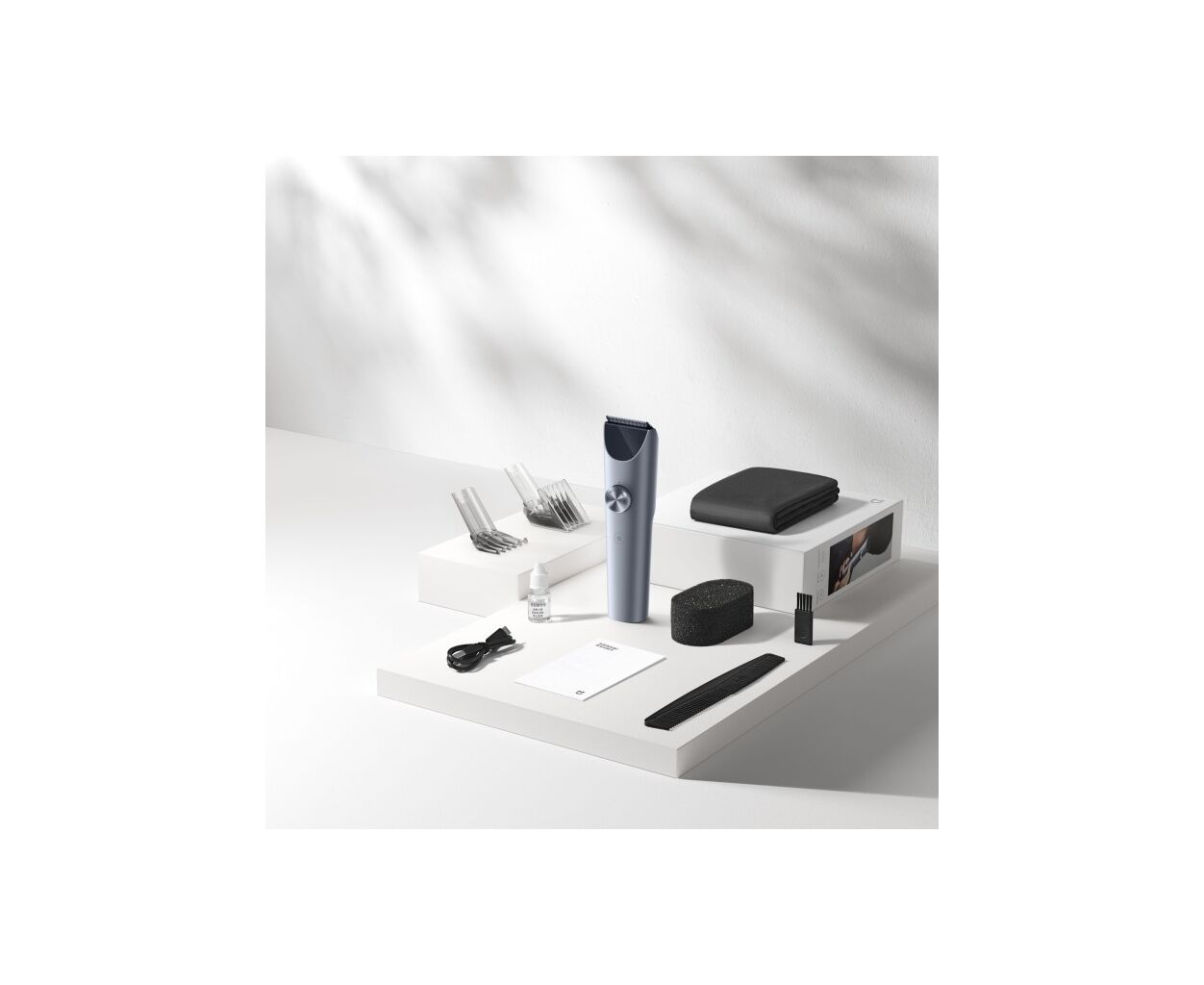 - Машинка для стрижки Насадка для стрижки 16-28 мм Насадка для стрижки 2-14 мм Губка Щітка для чищення Накидка перукаря Гребінець Кабель зарядки Інструкція Гарантійний талон Упаковка