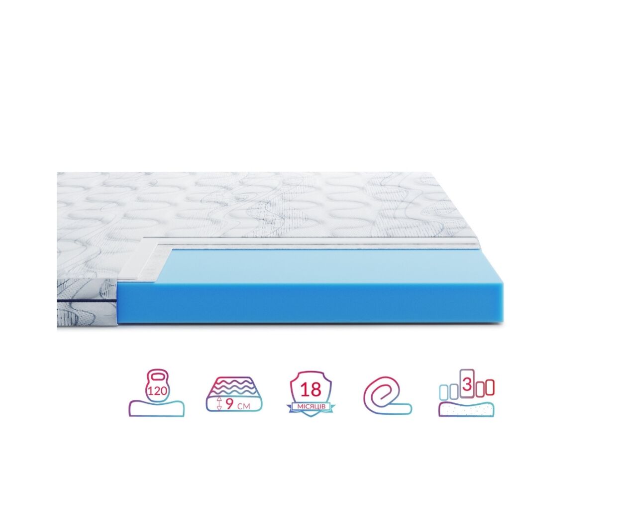Наявність пружин - безпружинний, оббивка - стрейч, наповнювач - OrthoFoam, рівень жорсткості - середньо-жорсткий, колір - білий, 190 х 170 х 9 см