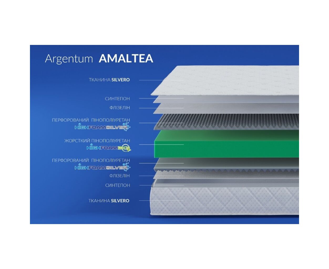 Опис Матрац Highfoam Noble Argentum Amaltea, ортопедичний двосторонній 80 x 200 см (4820001264715)