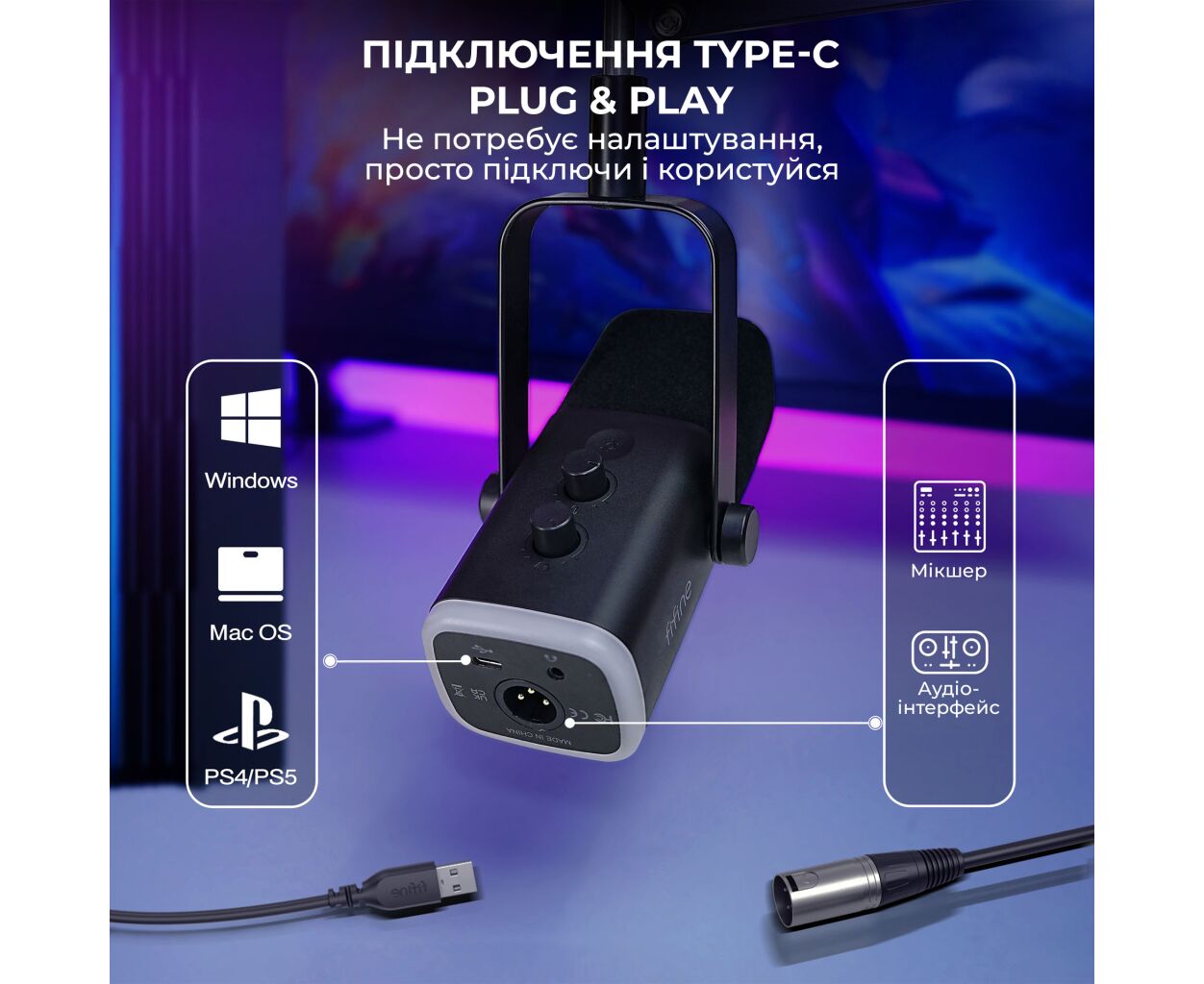 - Підключення через USB та XLR: FIFINE AM8T можна під'єднати як через USB, так і через XLR. Це дозволяє вибрати найзручніший спосіб підключення до вашого обладнання.
