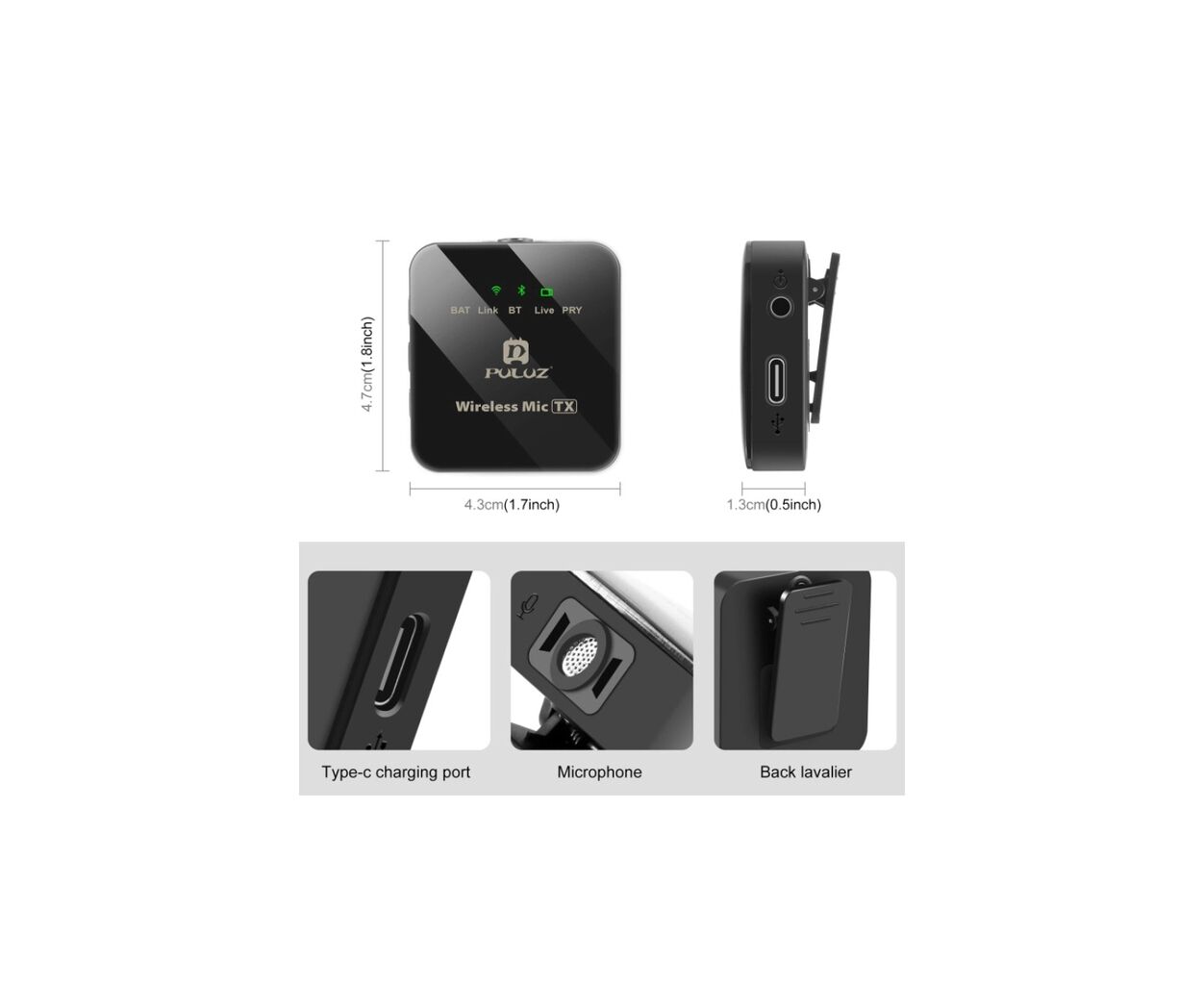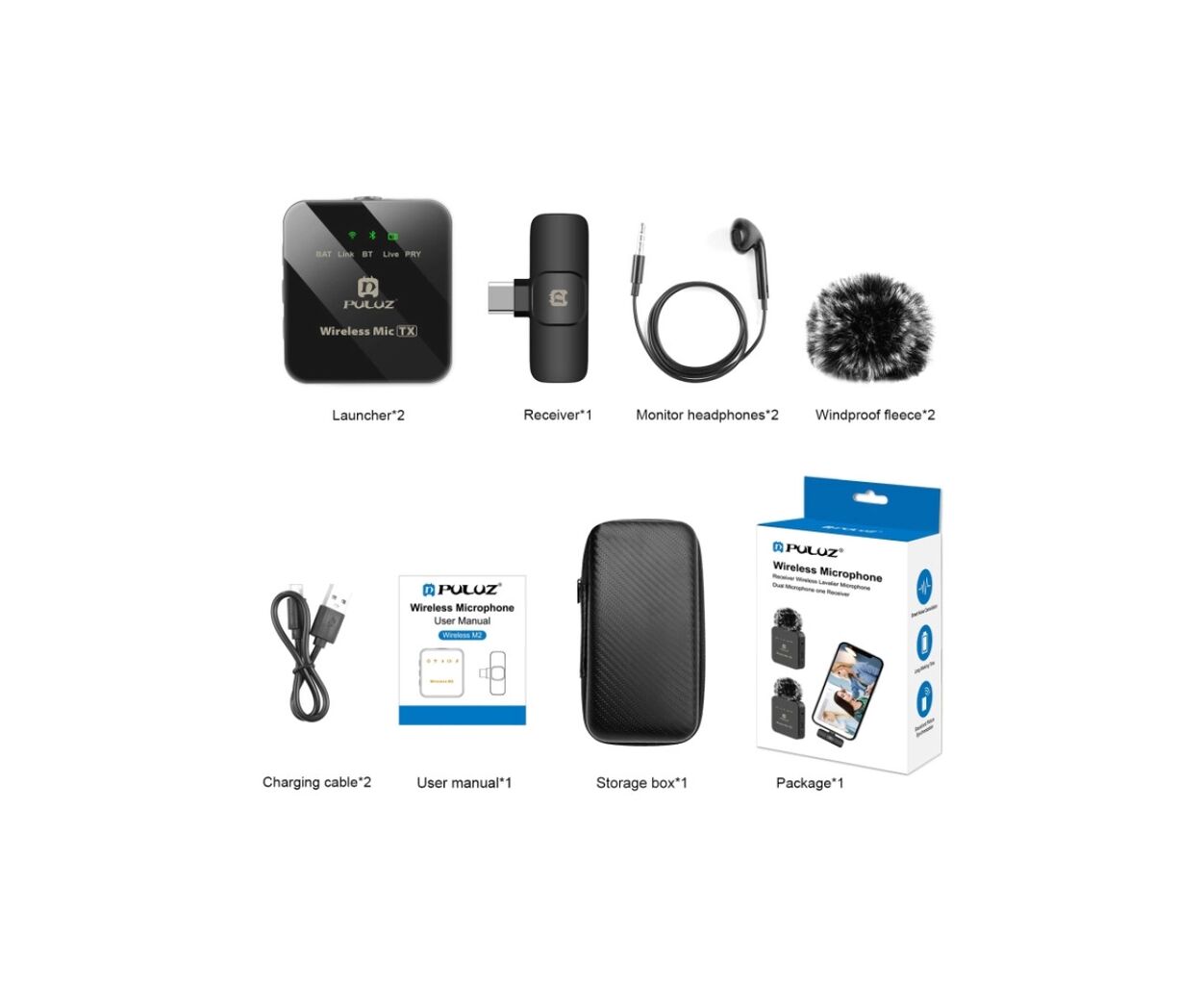 Мікрофон Puluz для телефону приймач Type-C і два мікрофони Black (PU648B)