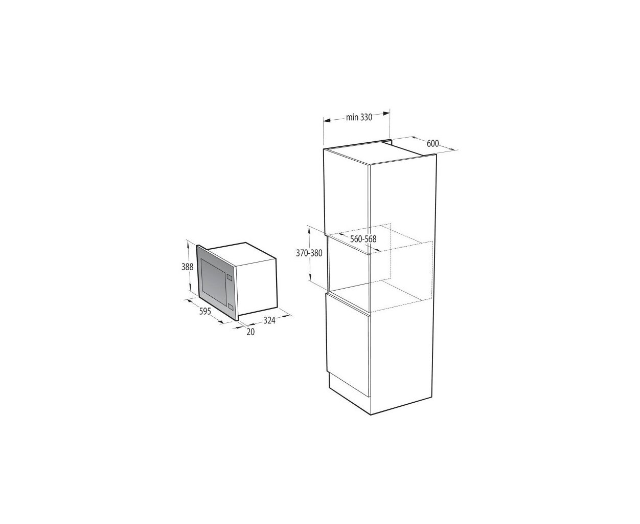 Тип - з грилем, вбудована, об'єм - 20 л, потужність НВЧ - 800 Вт, потужність гриля - 1000 Вт, тип керування - електронний, механічний, сенсорний, дисплей - так, годинник, діаметр поворотного піддону - 240 мм, підсвічування камери, таймер, Ширина - 59.5 см, Глибина - 32.4 см, Висота - 38.8 см, вага - 16 кг, чорний