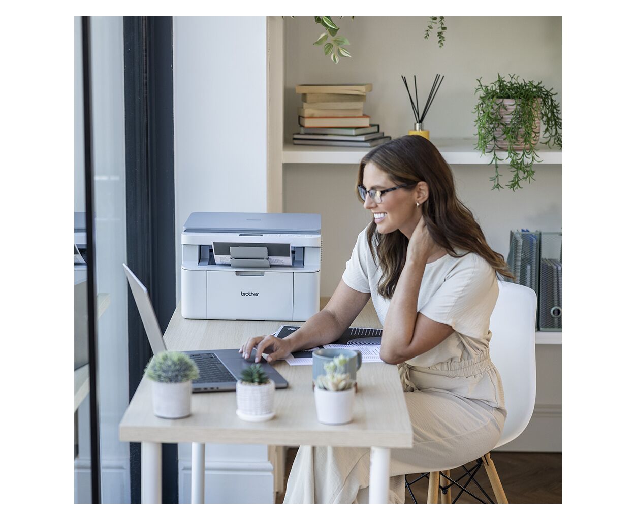 Компактний багатофункціональний принтер DCP-L1630W, розроблений для невеликих приміщень, ідеально підходить для дому та невеликих офісів. Він оснащений гнучкими можливостями підключення для простого налаштування та використання.
