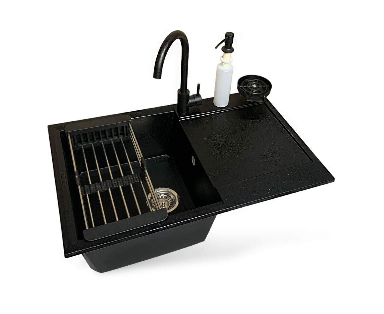 Мийка кухонна Adamant Horizon чорний + змішувач + дозатор + ополіскувач склянок + коланд (4824296106303)