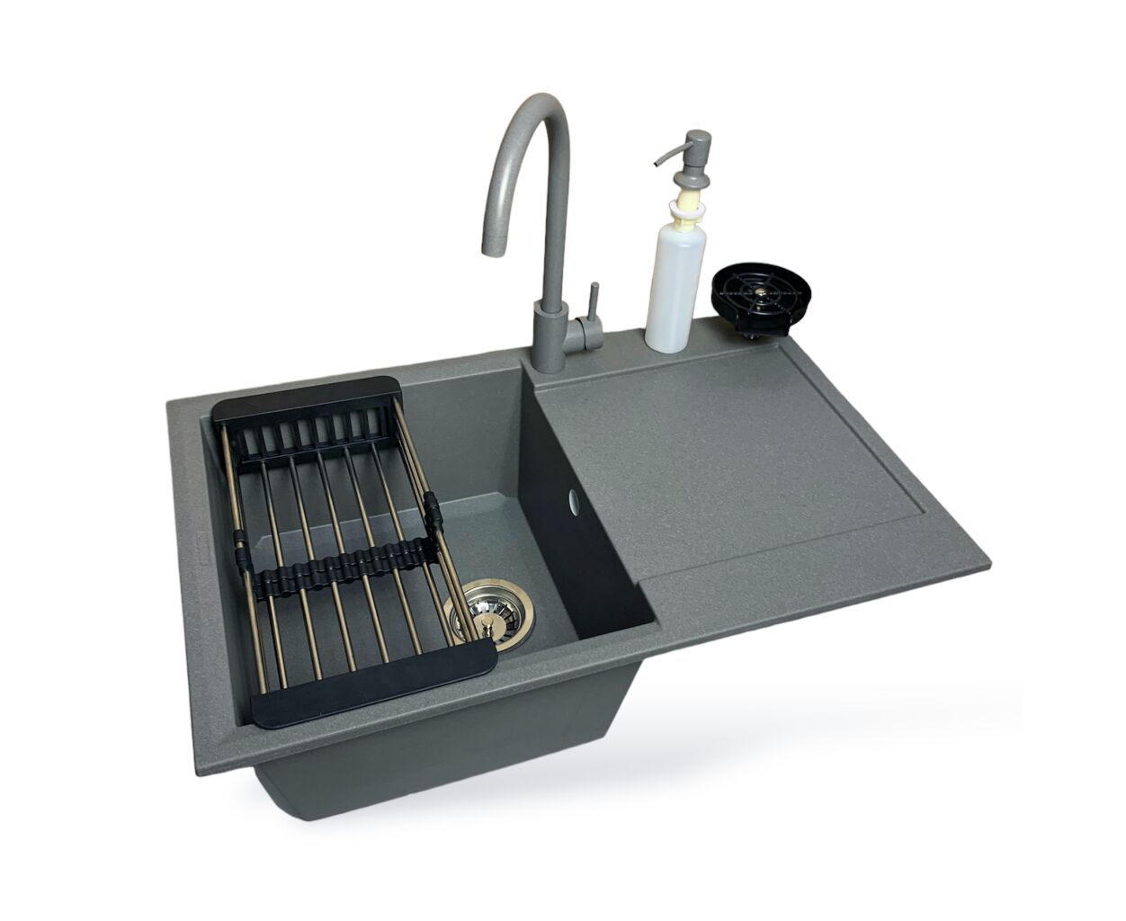 Мийка кухонна Adamant Horizon сірий + змішувач + дозатор (1824296901504)