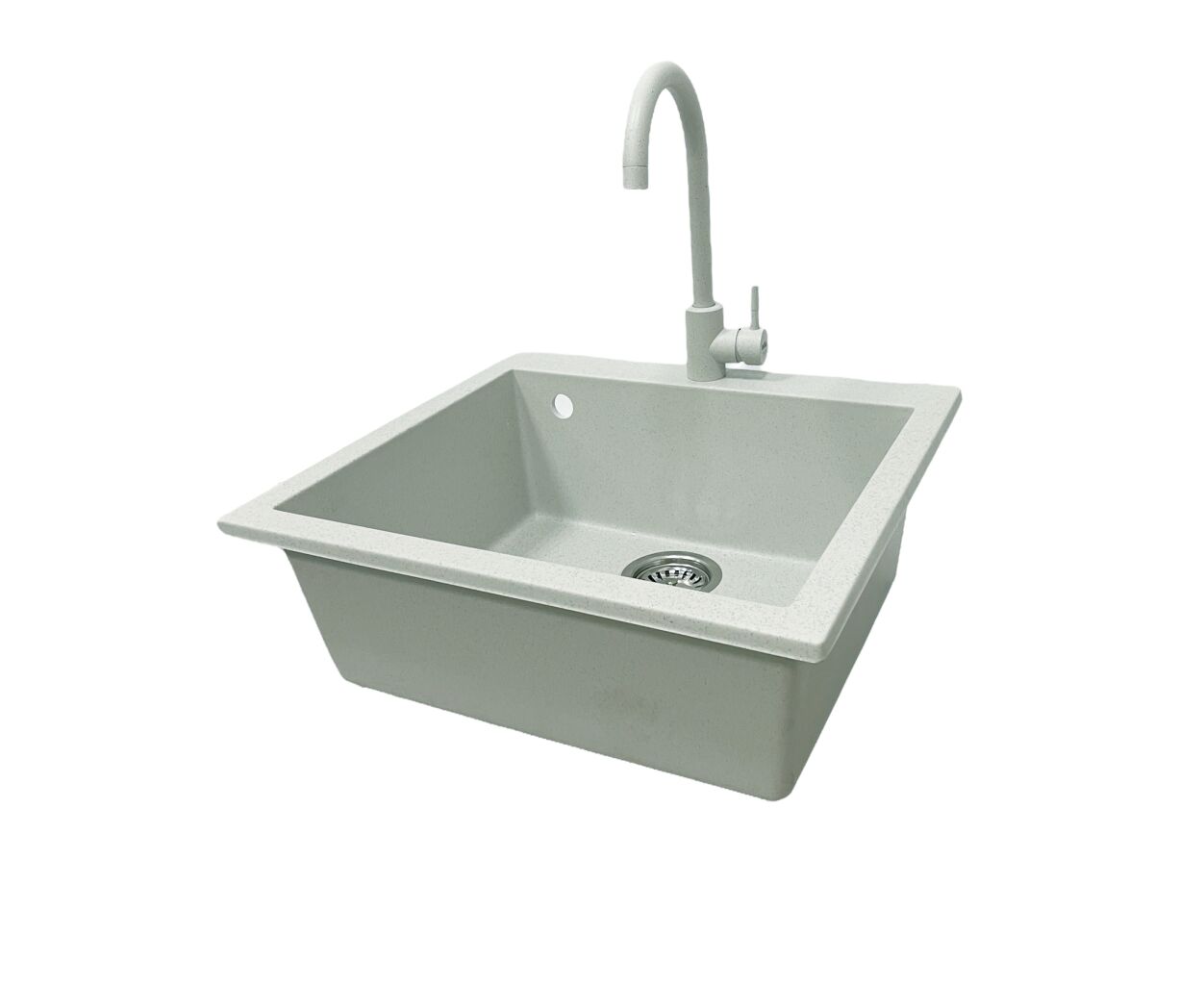 Набір Adamant Univer поєднує компактну квадратну мийку зі штучного каменю та функціональний змішувач, створюючи сучасне рішення для кухні. Завдяки технології Solid Surface поверхня відзначається міцністю, термостійкістю та зручністю у догляді. Глибока чаша забезпечує комфорт під час щоденних кухонних процесів. Врізний монтаж дозволяє акуратно інтегрувати мийку у стільницю, створюючи гармонійний вигляд робочої зони.