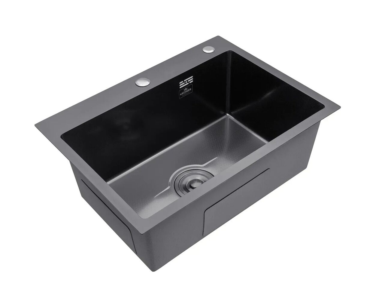 Кухонна мийка Kroner Derby KRP PVD - 5843HM - це ідеальний вибір для вашої кухні, який поєднує в собі стильний дизайн і практичність, допомагаючи вам легко виконувати всі кулінарні завдання і виглядати елегантно при цьому.