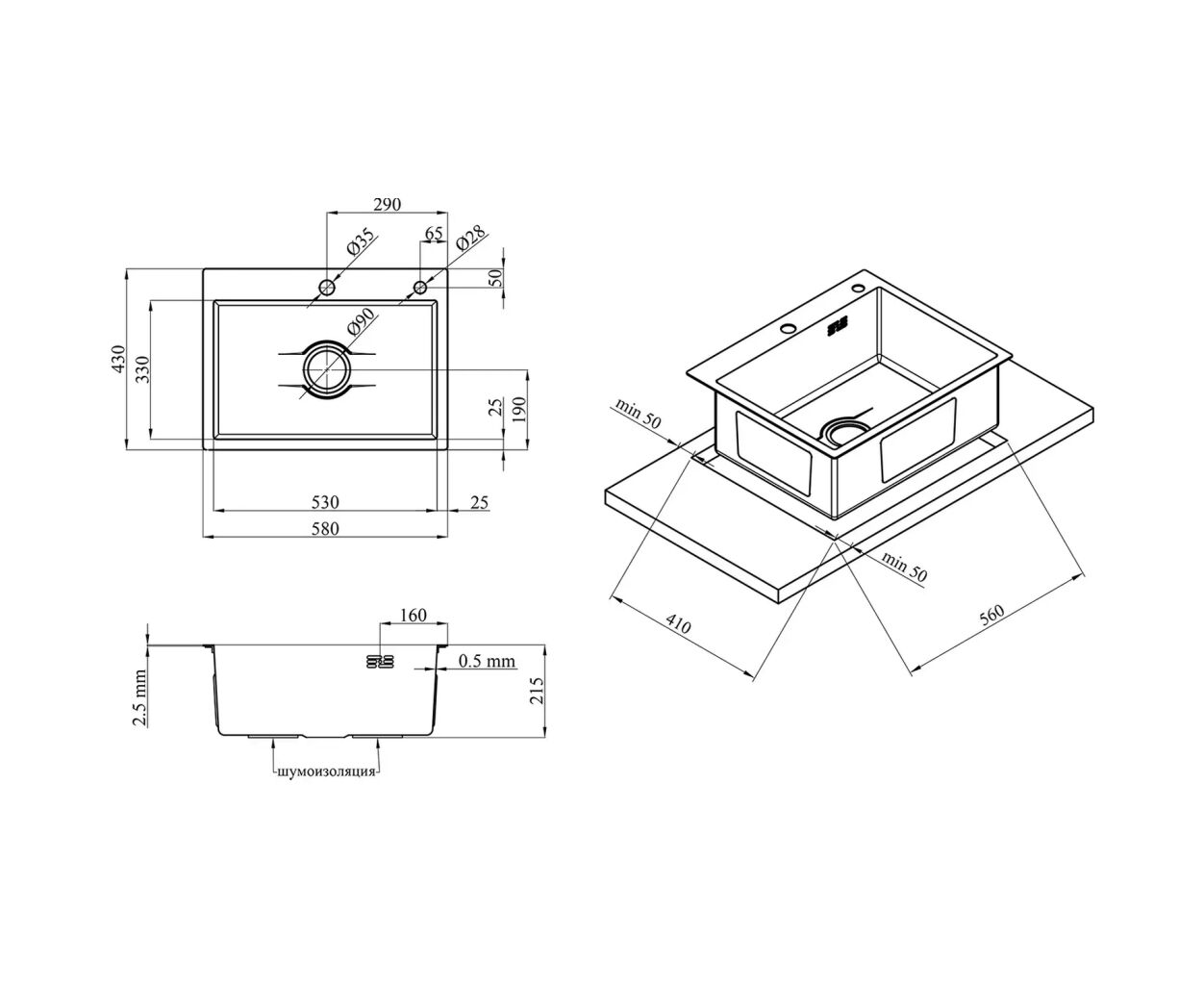 Характеристики Мийка кухонна Kroner KD5843HM (CV027241)