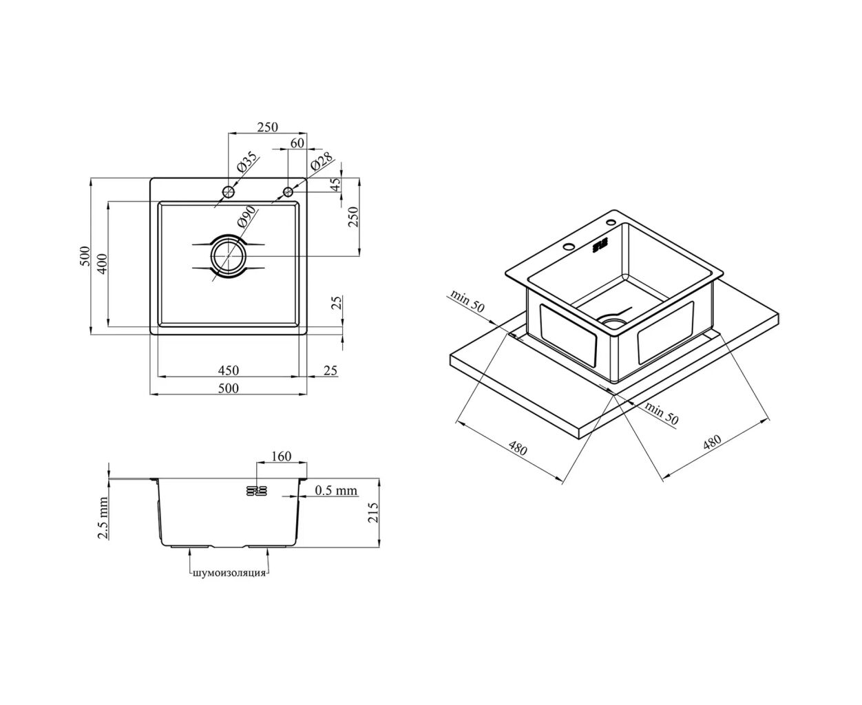 Характеристики Мийка кухонна Kroner KDBrush5050HM (CV027234)