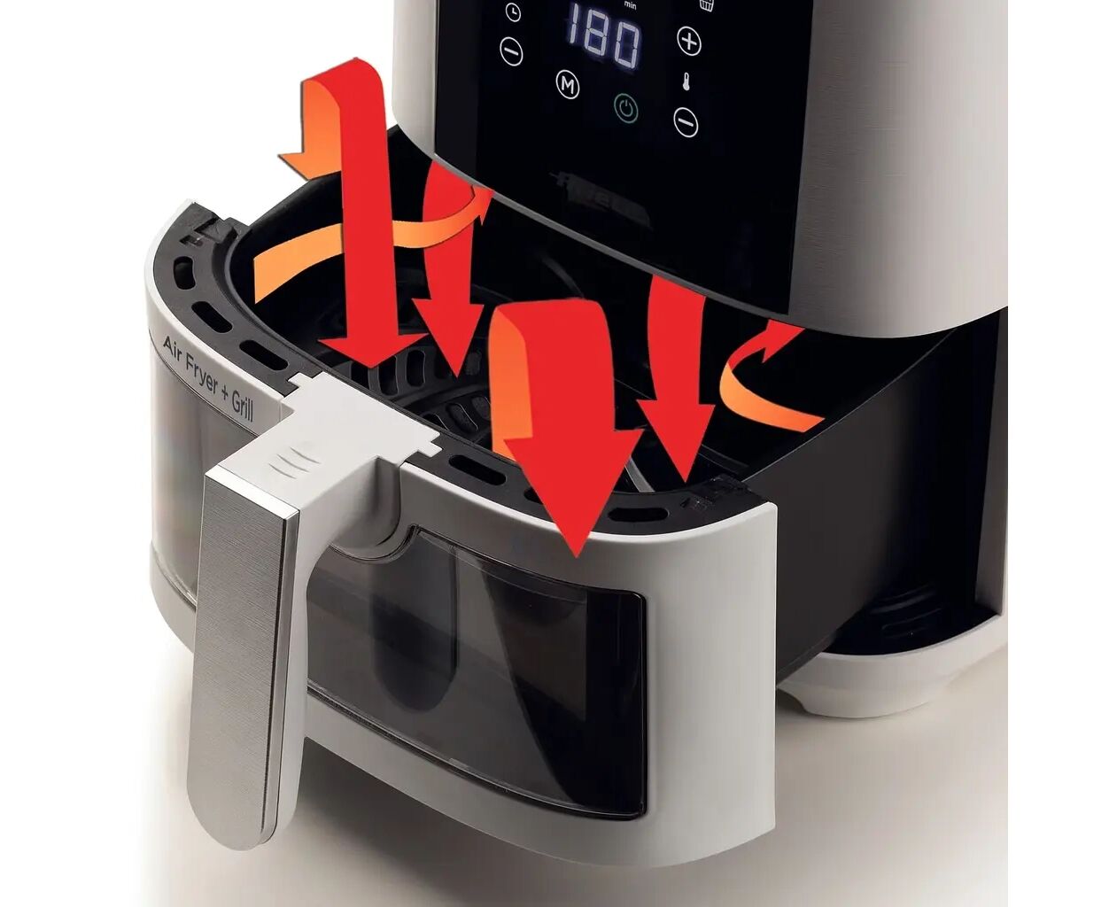 Смаженню - так, неприємним запахам - ні! У фритюрниці Air Fryer 6L ви можете смажити будь-які продукти, не димлячи і не залишаючи в будинку дратівливого запаху смаженого, характерного для олійних фритюрниць. Фактично, високотемпературне повітря циркулює всередині фритюрниці, готуючи їжу швидко та без жиру, не випускаючи назовні дим і запахи.