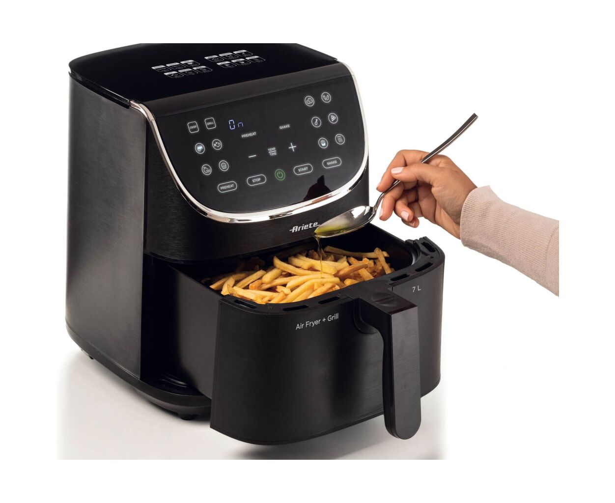 Завдяки місткому 7-літровому кошику ви зможете приготувати до 2,5 кг картоплі фрі за один раз — це чудовий вибір для великої родини чи прийому гостей. Антипригарне покриття чаші гарантує легке очищення після приготування.