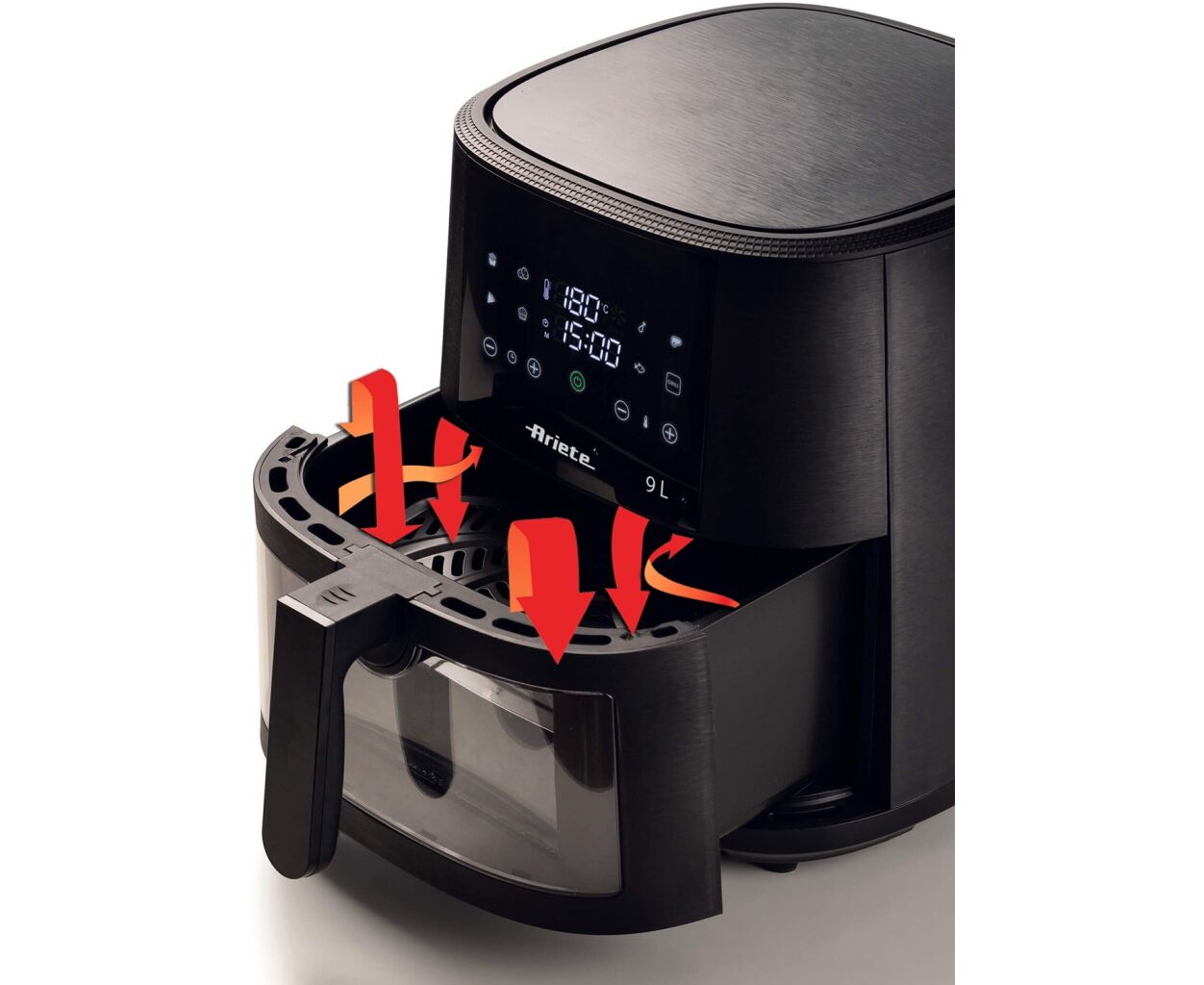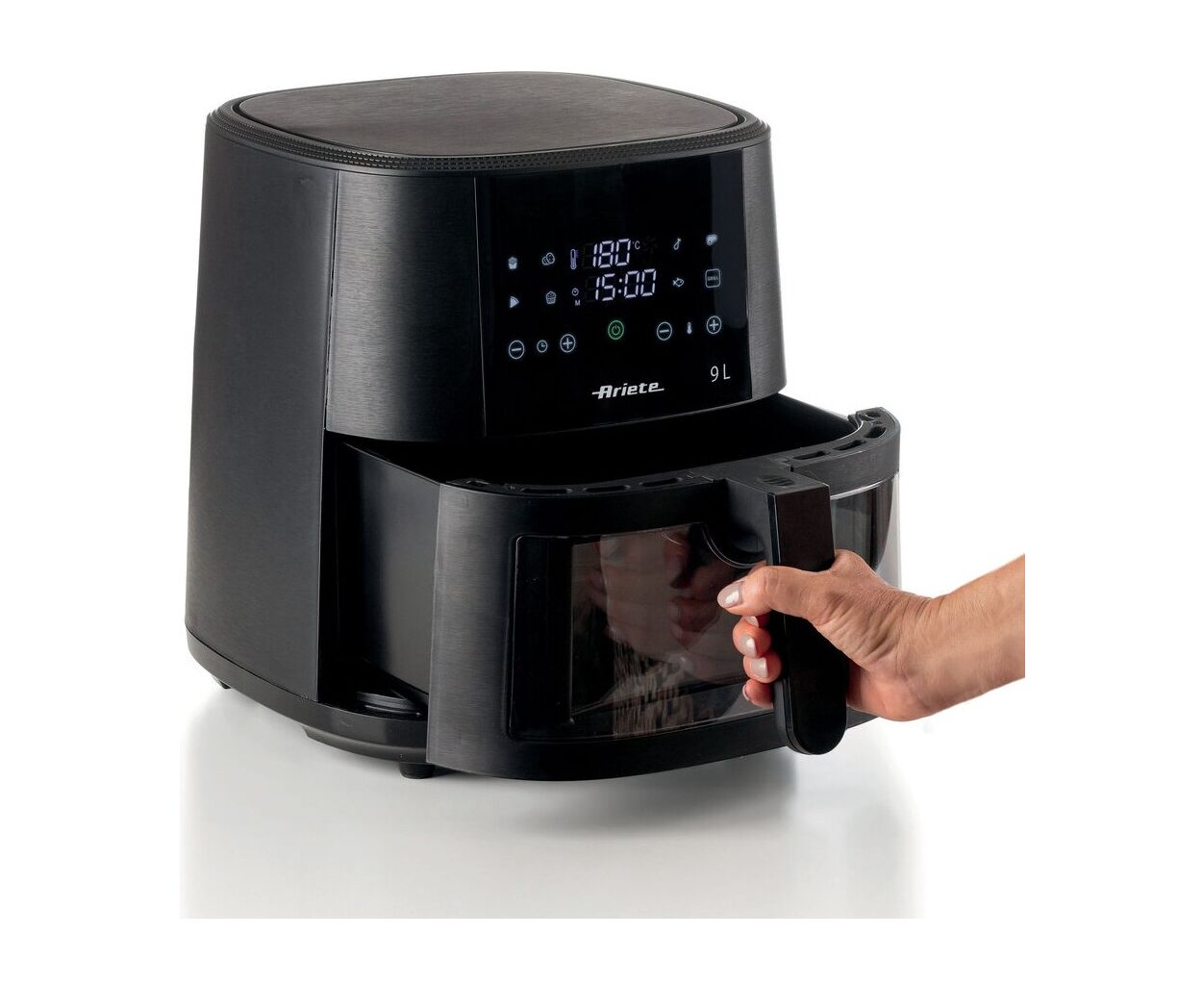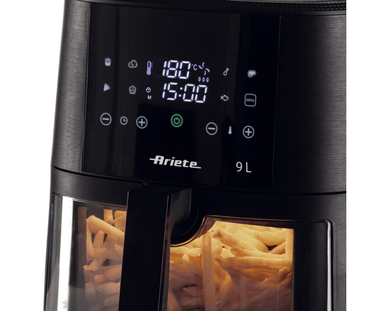 Мультипіч ARIETE 4630 — це місткий і потужний пристрій для приготування хрустких та корисних страв із мінімальною кількістю олії. Завдяки 9-літровому кошику з повітряною фритюрницею можна приготувати до 3.5 кг картоплі фрі за один раз, що ідеально підходить для великих родин або вечірок. Інноваційна технологія гарячого повітря забезпечує рівномірне приготування без зайвого жиру, роблячи страви не лише смачними, а й корисними.