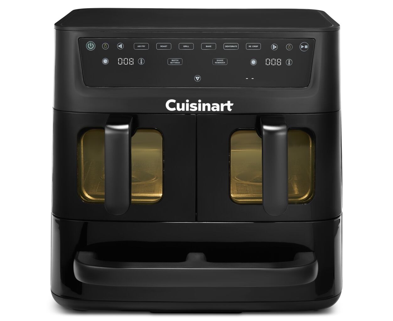 Подвійні кошики оснащені оглядовим вікном та внутрішнім освітленням, дозволяючи контролювати страву, не відкриваючи шухляди. Кожен кошик підтримує функції air fry, roast, grill, bake, re-crisp та dehydrate і нагрівається до 210°C.