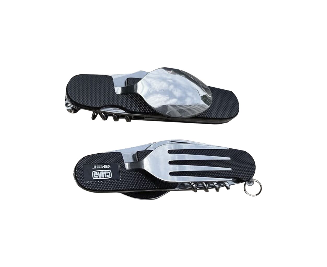 Особлива увага приділена легованій сталі 2Cr13, з якої виготовлені столові прилади та інші інструменти, що забезпечує тривалий термін експлуатації. Чорний колір спостережно доповнює будь-який стиль. У комплекті також є чохол, який дозволяє зручно носити мультитул на ремені, забезпечуючи його безпеку і швидкий доступ у будь-якій ситуації.