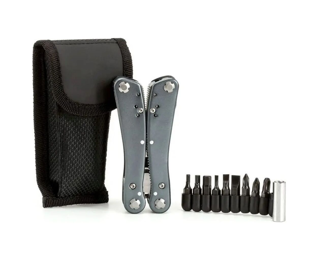 Колір графіту додає інструменту елегантності та стильного вигляду, а вага в 270 г робить його легким і зручним для щоденного використання. У комплекті є міцний чохол, який надійно захищає мультитул від подряпин та забруднень, забезпечуючи додатковий комфорт при перенесенні.