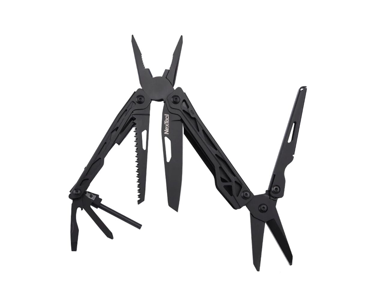 Якість інструментів забезпечена використанням легованої сталі 30Cr13 з твердістю 50 HRC, що робить їх стійкими до зносу і пошкоджень. Цей мультитул пропонує широкий вибір інструментів, таких як ніж, відкривачка для пляшок, кресало, пила, плоскі та хрестові викрутки, кліщі і плоскогубці. Така багатофункціональність перетворює його на незамінний набір для вирішення різноманітних завдань в умовах міста чи на природі.