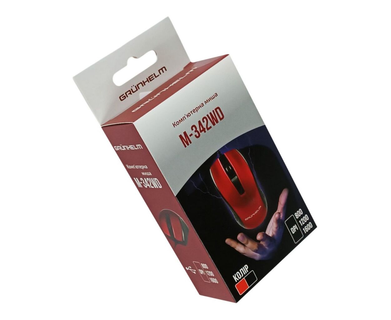 Опис Мишка Grunhelm M-342WD USB Red (126867)