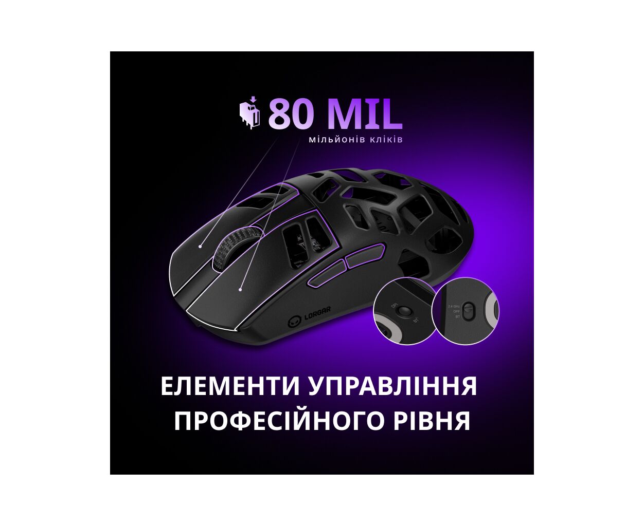 Оснащена передовим оптичним сенсором PixArt PAW3395, Lorgar Elite MSE90W забезпечує вражаючу точність і швидкість завдяки максимальній роздільній здатності в 26000 DPI. З можливістю налаштування чутливості кожен рух перетворюється на блискавичну реакцію, що в поєднанні з прискоренням у 50 g та швидкістю відстеження до 650 IPS, робить цю мишку незамінною для найнапруженіших ігор.