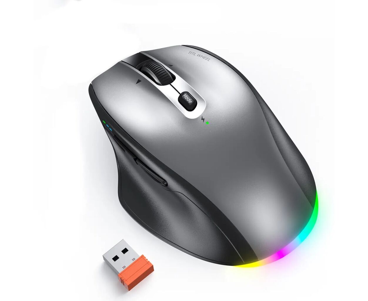 Мишка Meetion BTM007 Wireless/Bluetooth Gray (MT-BTM007-W) - це елегантне та функціональне рішення для тих, хто цінує комфорт і тишу під час роботи. Завдяки подвійному режиму підключення через Bluetooth 5.0 та 2.4 ГГц USB адаптер, ви можете насолоджуватися безперебійною роботою з будь-яким пристроєм, незалежно від того, вдома ви, в офісі чи в дорозі.