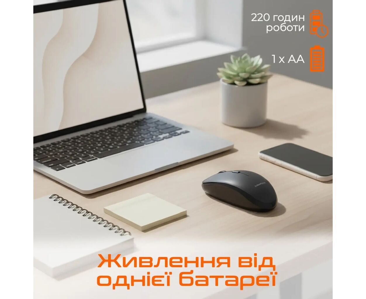 Автономність вражає: одна батарейка AA забезпечує до 220 годин безперервної роботи. Функція режиму сну автоматично активується під час бездіяльності, значно подовжуючи термін служби елемента живлення. Технологія Plug & Play - під'єднав і працюй: жодних драйверів, повна сумісність з Windows і macOS «з коробки».